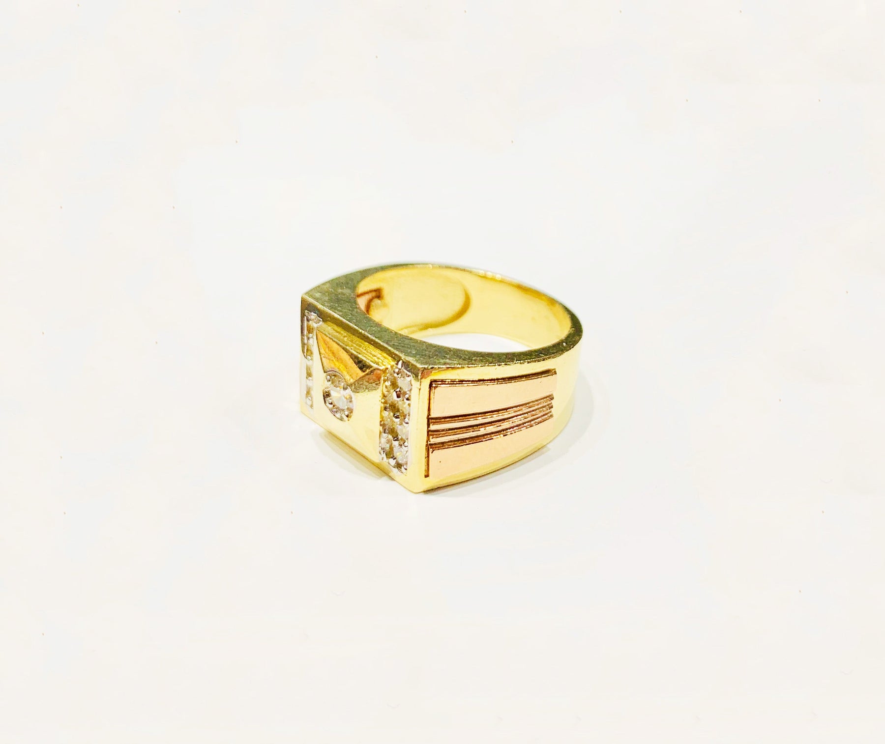 This is a two-tone Square Ring with cubic zirconia stones.