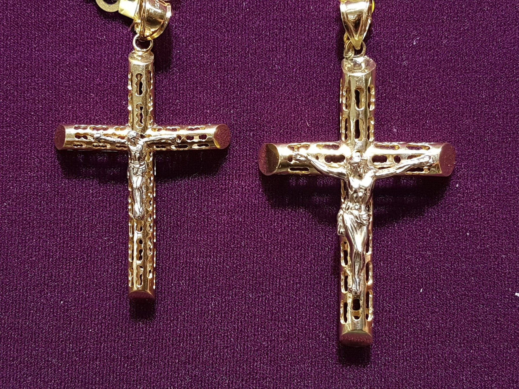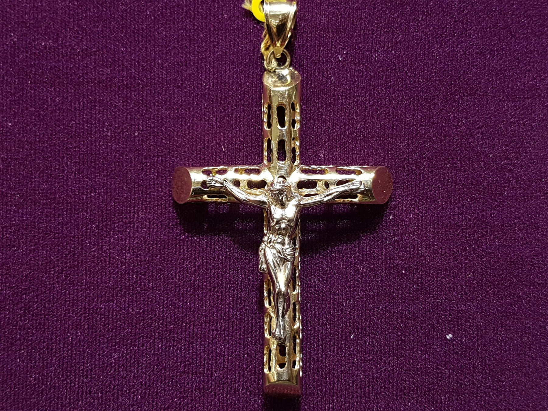 Patterned Tube Crucifix Pendant 10K - Lucky Diamond 恆福珠寶金行 New York City 169 Canal Street 10013 Jewelry store Playboi Charlie Chinatown @luckydiamondny 2124311180