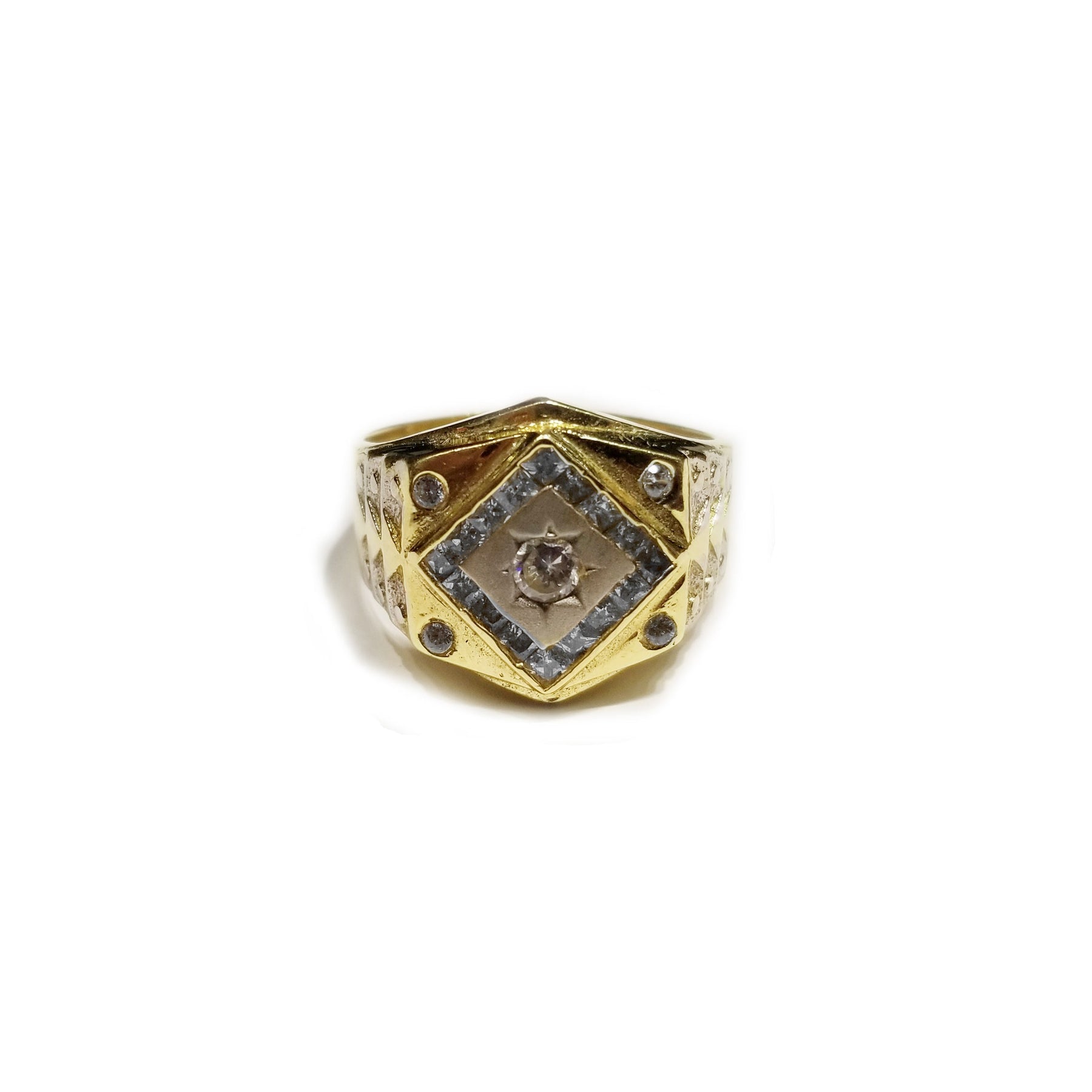 Description: This is a Diamond Shaped CZ Crystal Cocktail Yellow Gold Ring (14K) made with the highest quality gold metal that has been polished and refined to perfection.