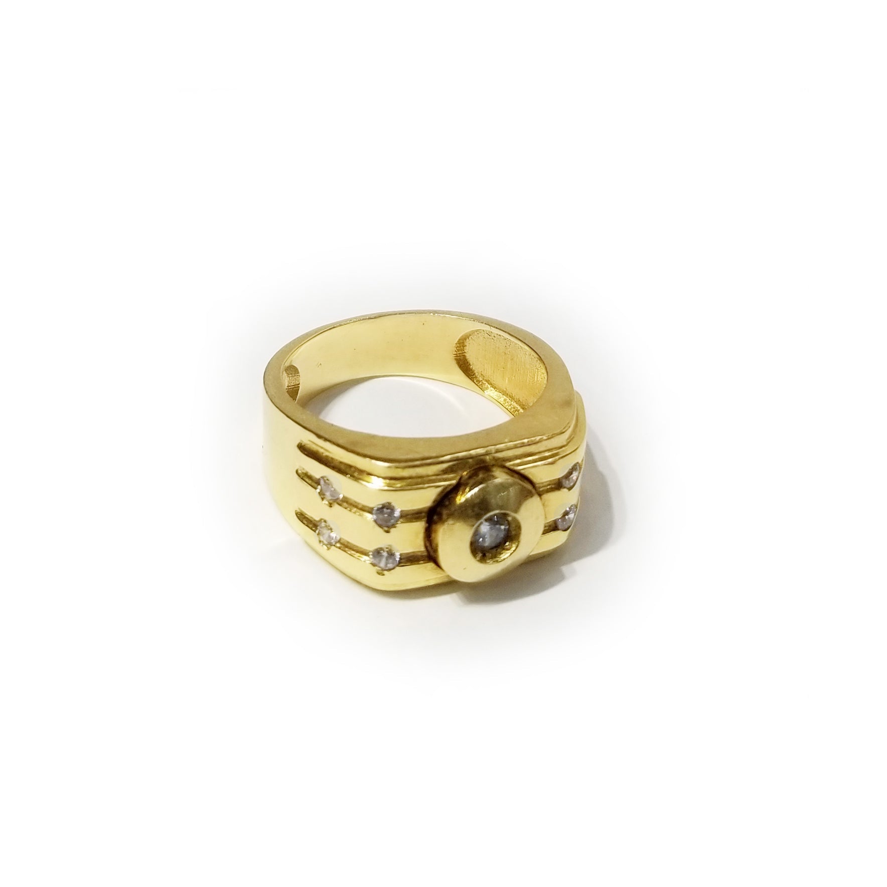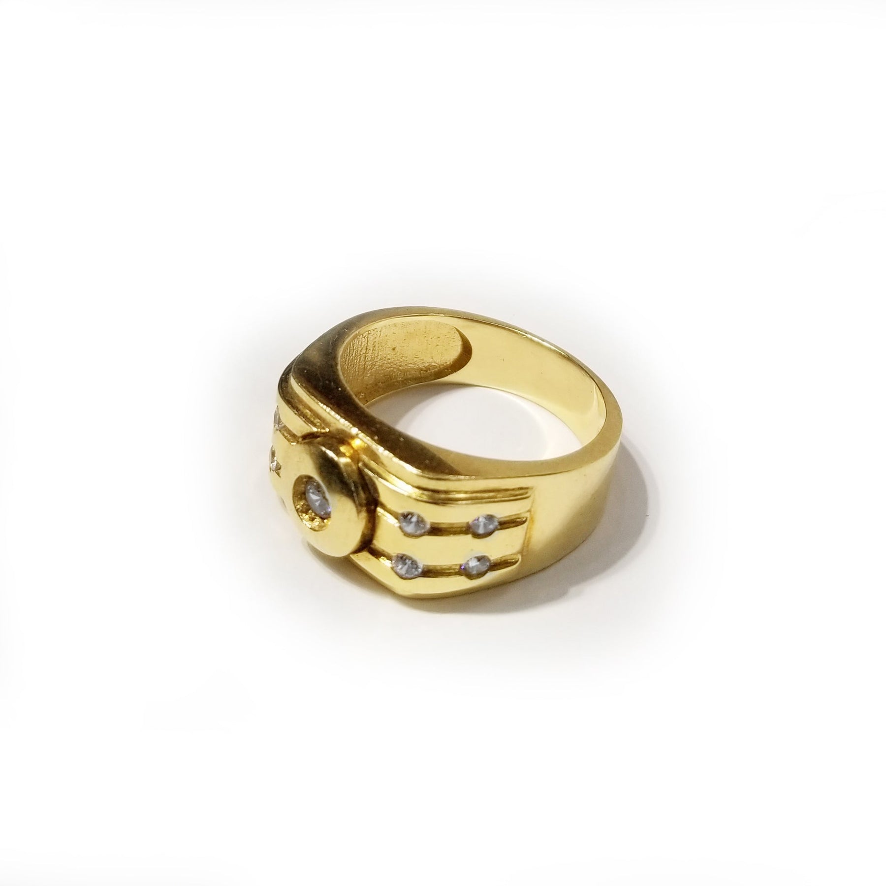 Description: This is a Seven CZ Crystal Yellow Gold Ring made with the highest quality gold metal that has been polished and refined to perfection.