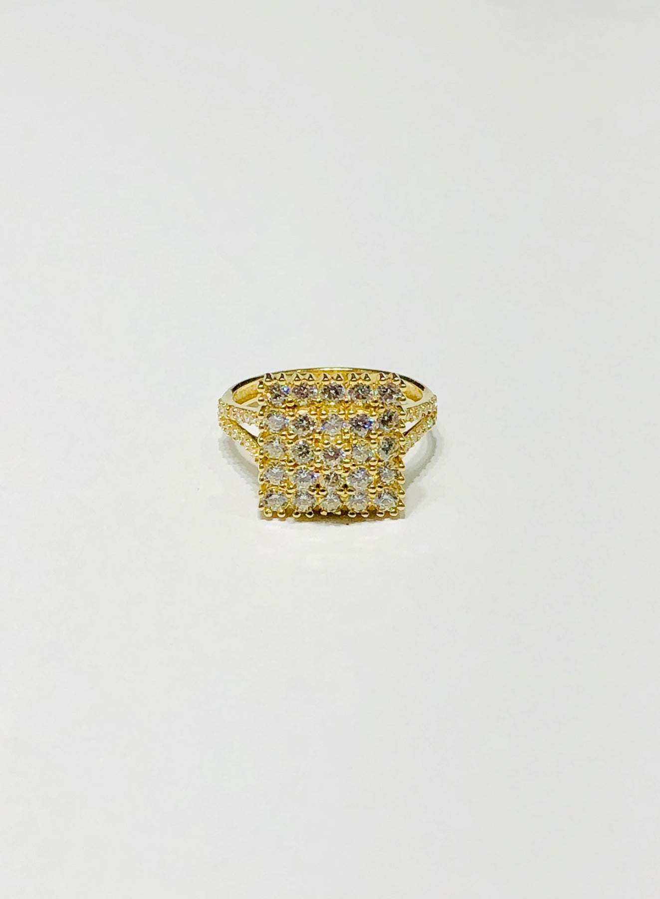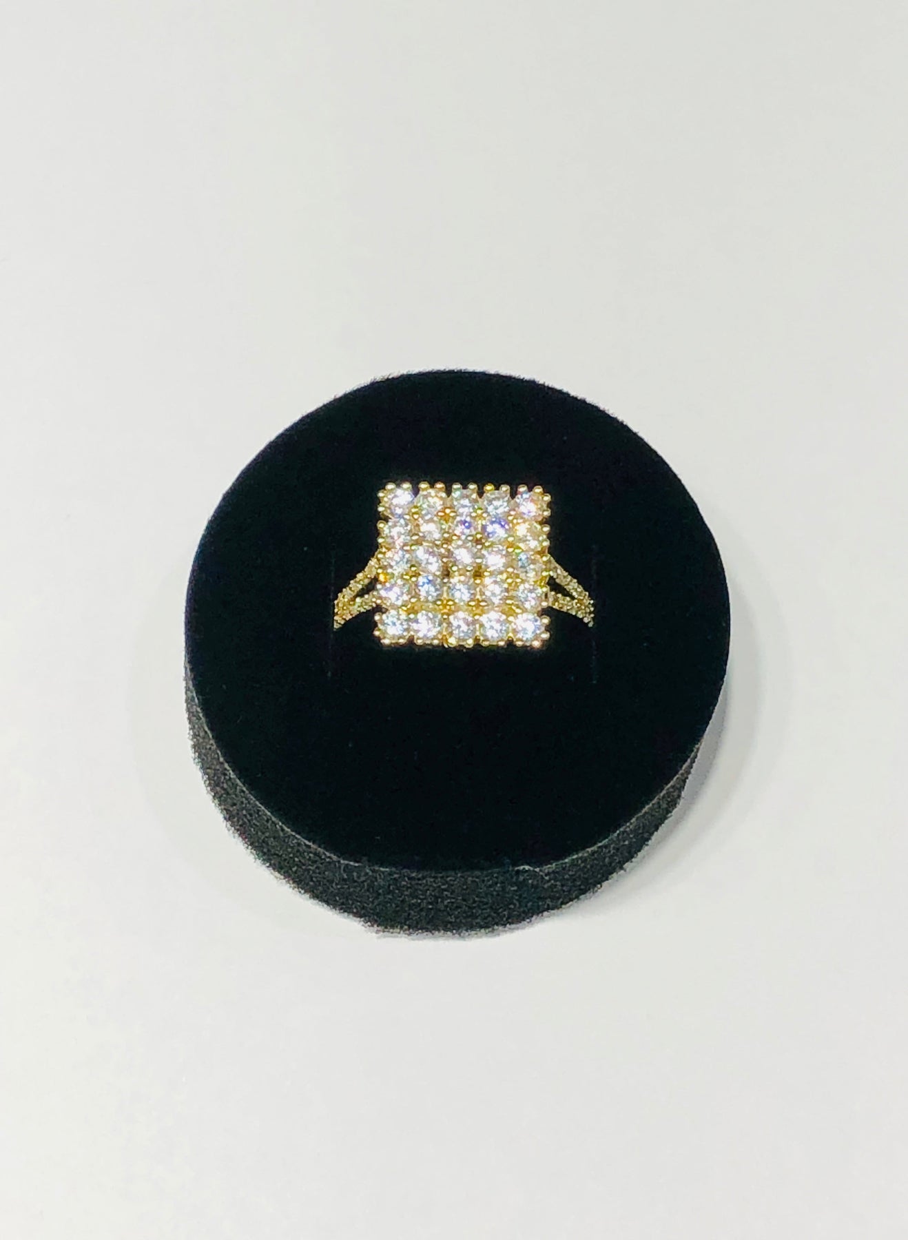 Square CZ Cluster Ring (14K) front - Lucky Diamond - New York