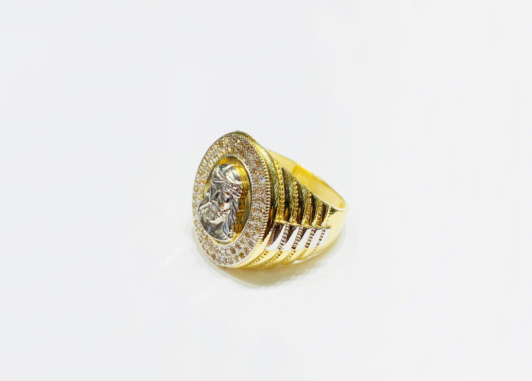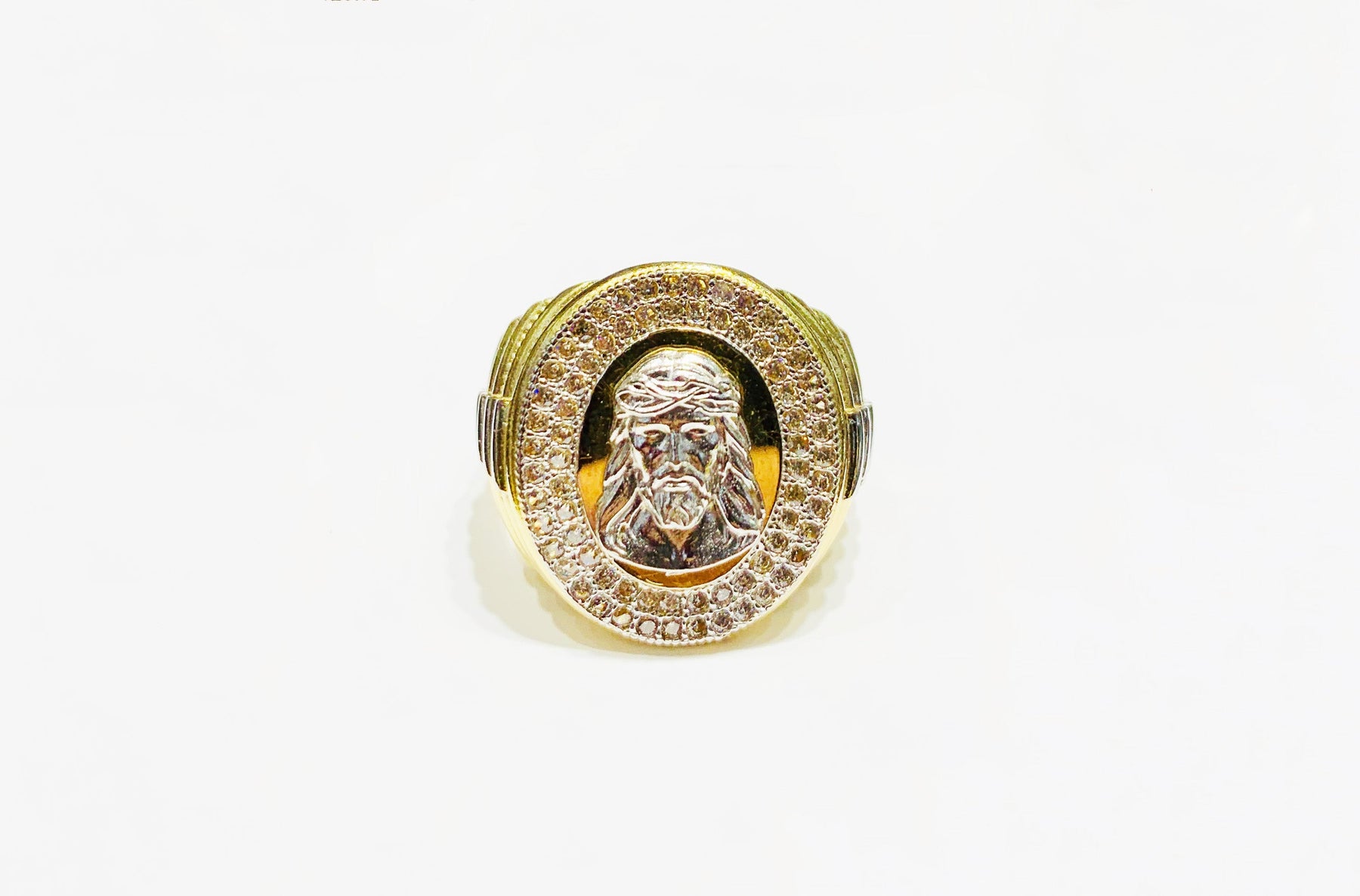 This is a Religious Jesus Head Ring with cubic zirconia stones.