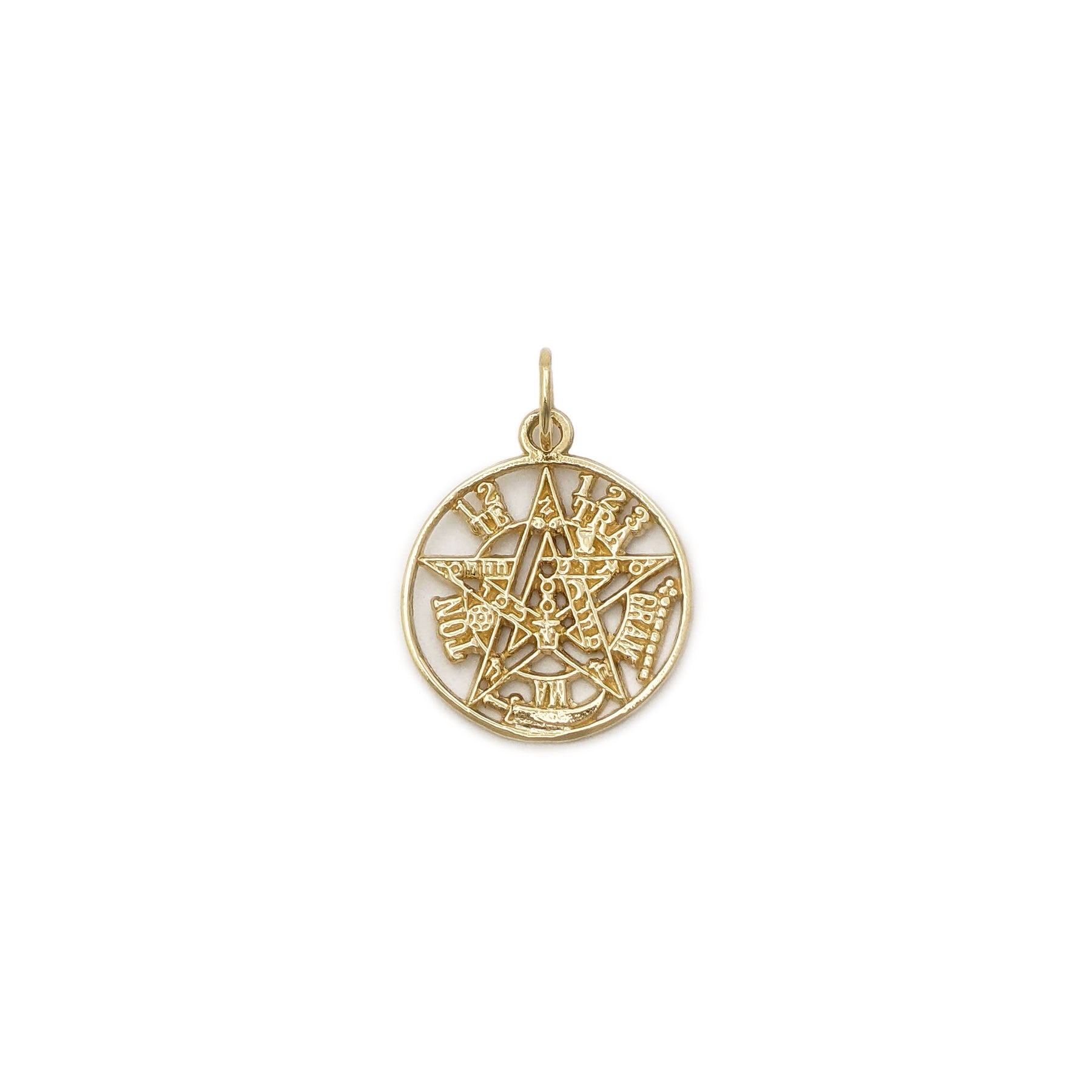 Pronounced "Yahweh", one of the names of God in the Hebrew Bible. This miniature medallion features a pentacle-themed Tetragrammaton.
