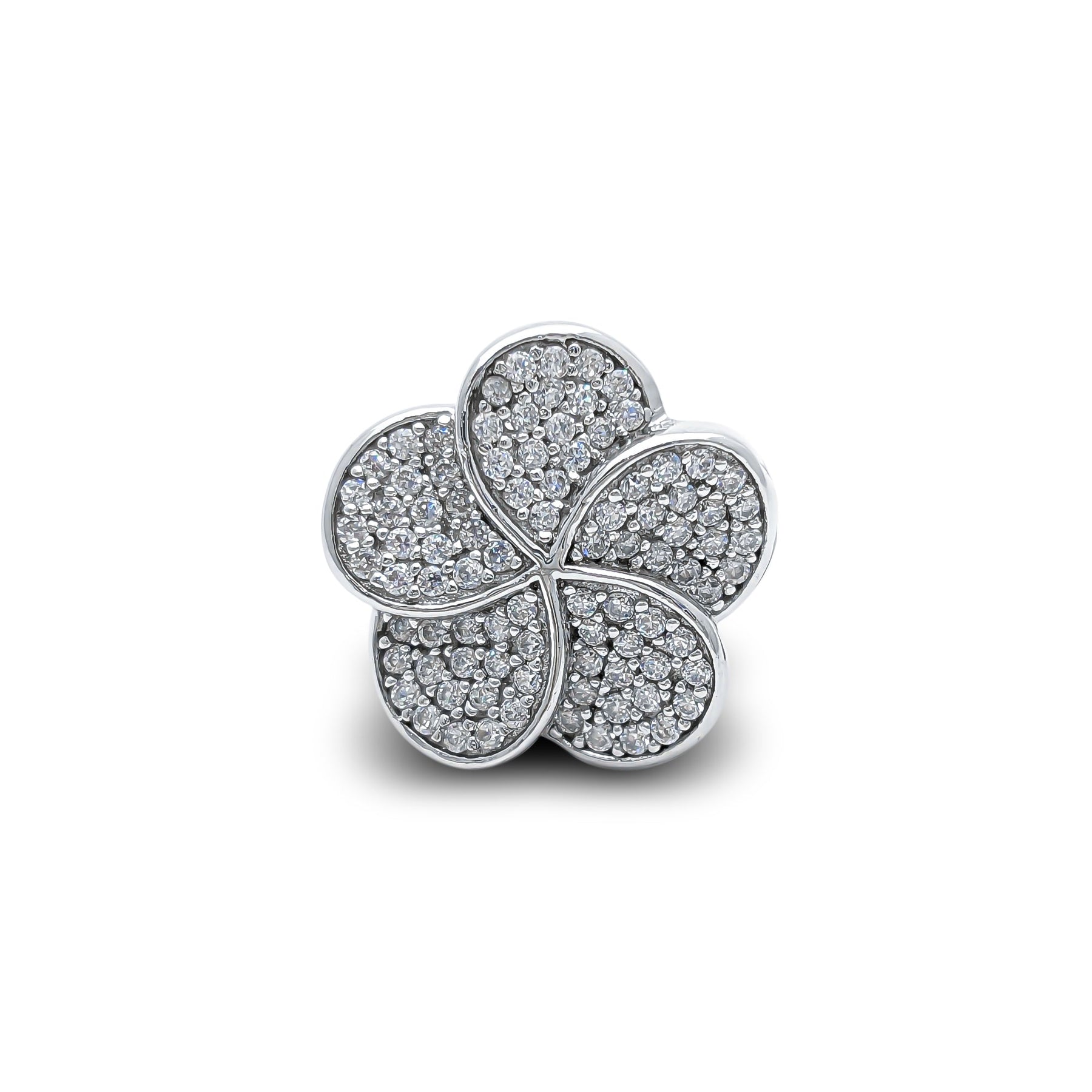 A shimmering five-petal flower ring flushed with cubic zirconia stones.