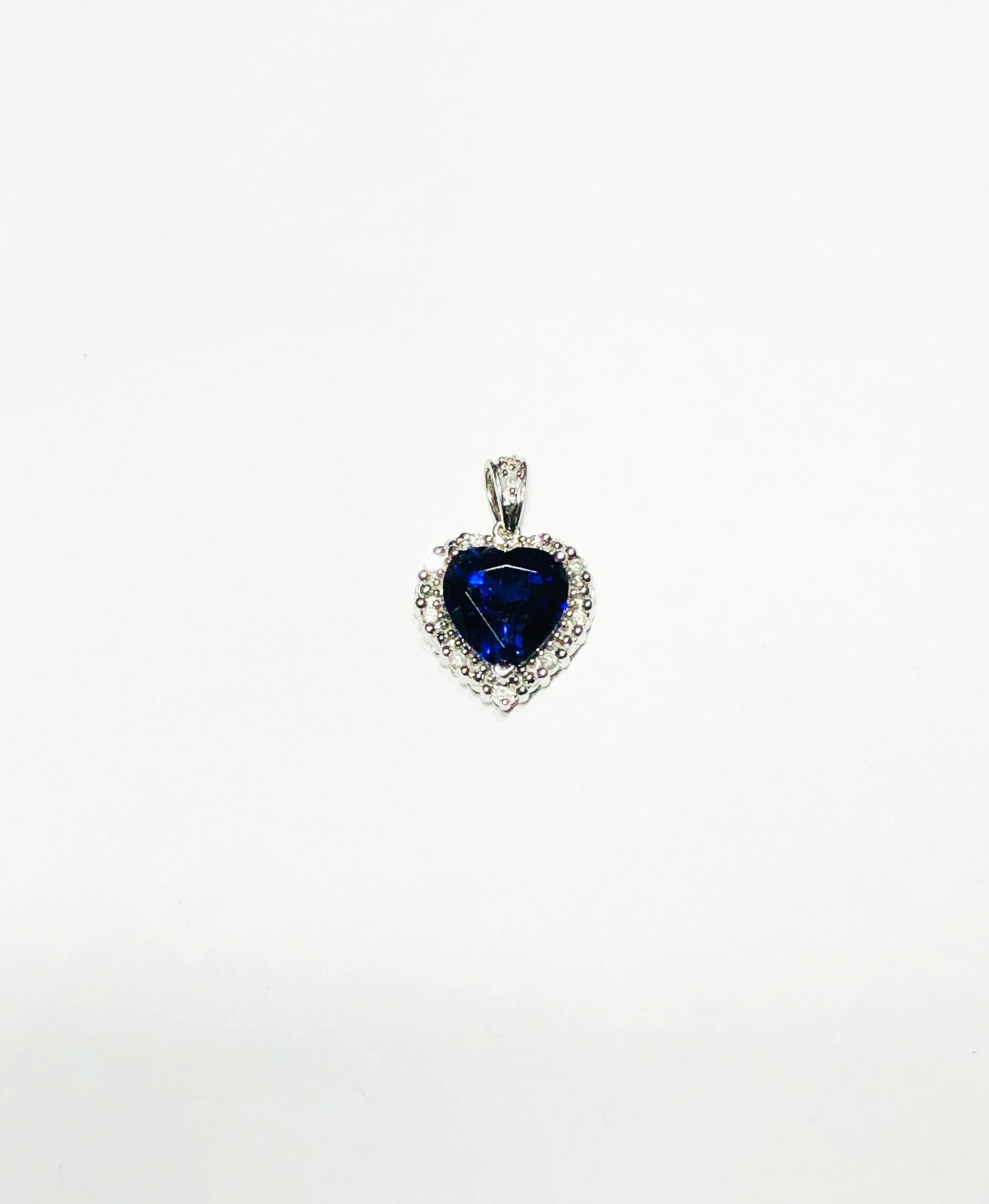 A heart-shaped Blue Topaz is highlighted by a glimmering halo of cubic zirconia on this pendant.