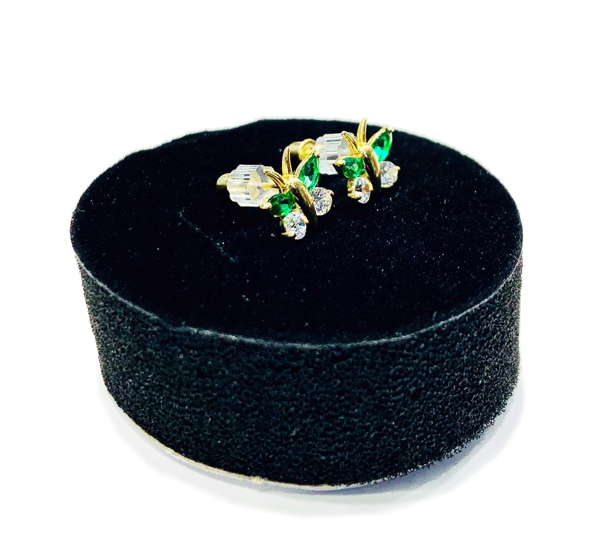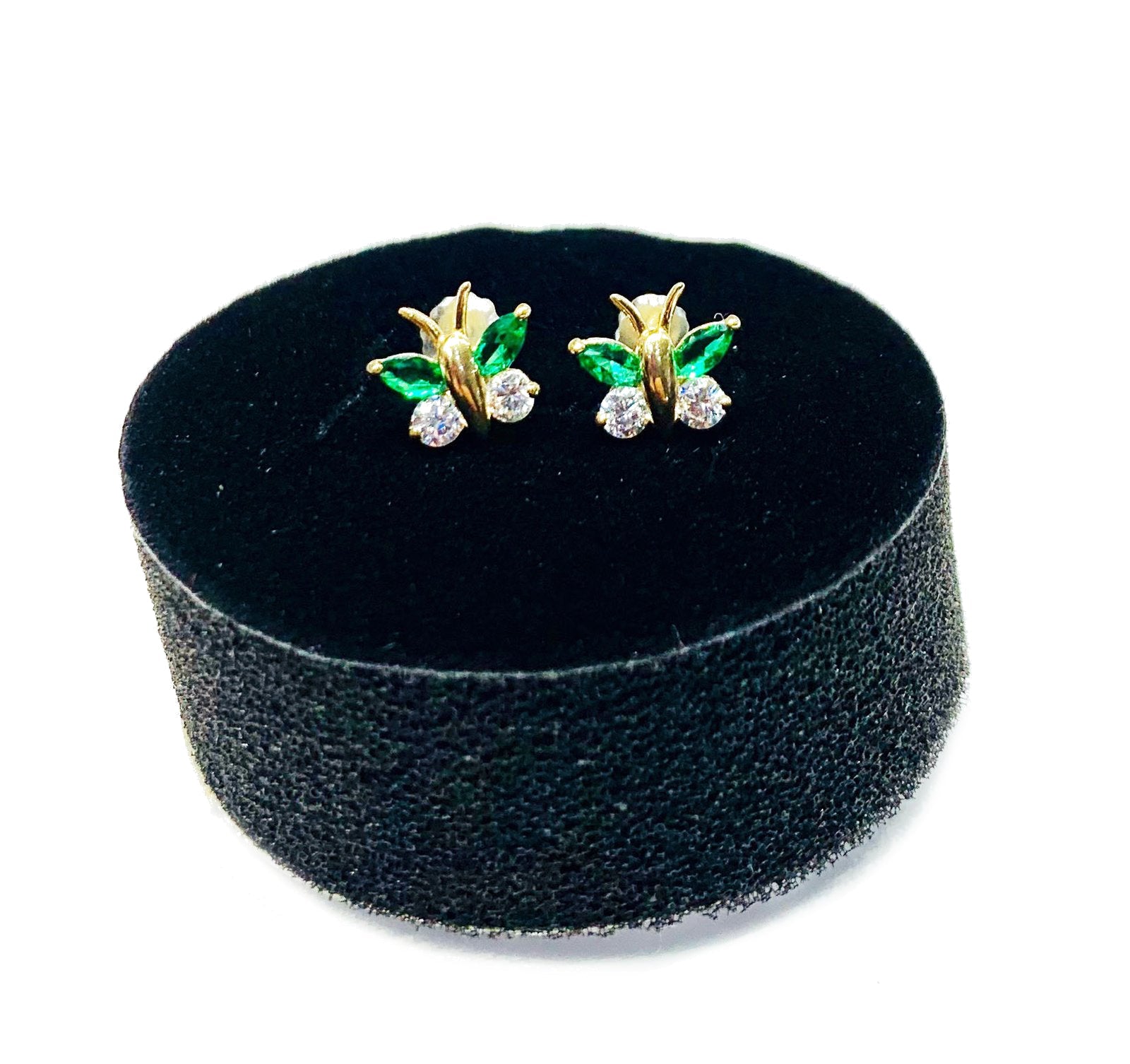 This is a beautiful buttlerfly earrings with green cubic zirconia stones.