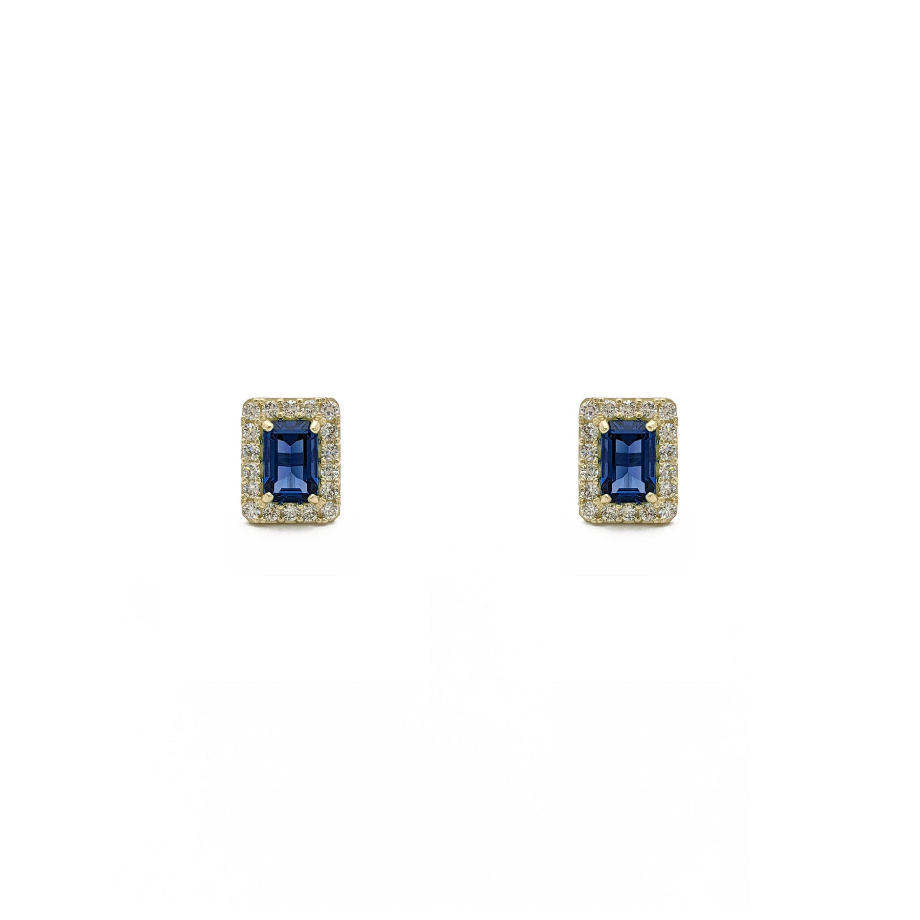 Emerald-Cut Gemstone Halo Earrings blue (14K) - front - Lucky Diamond - New York
