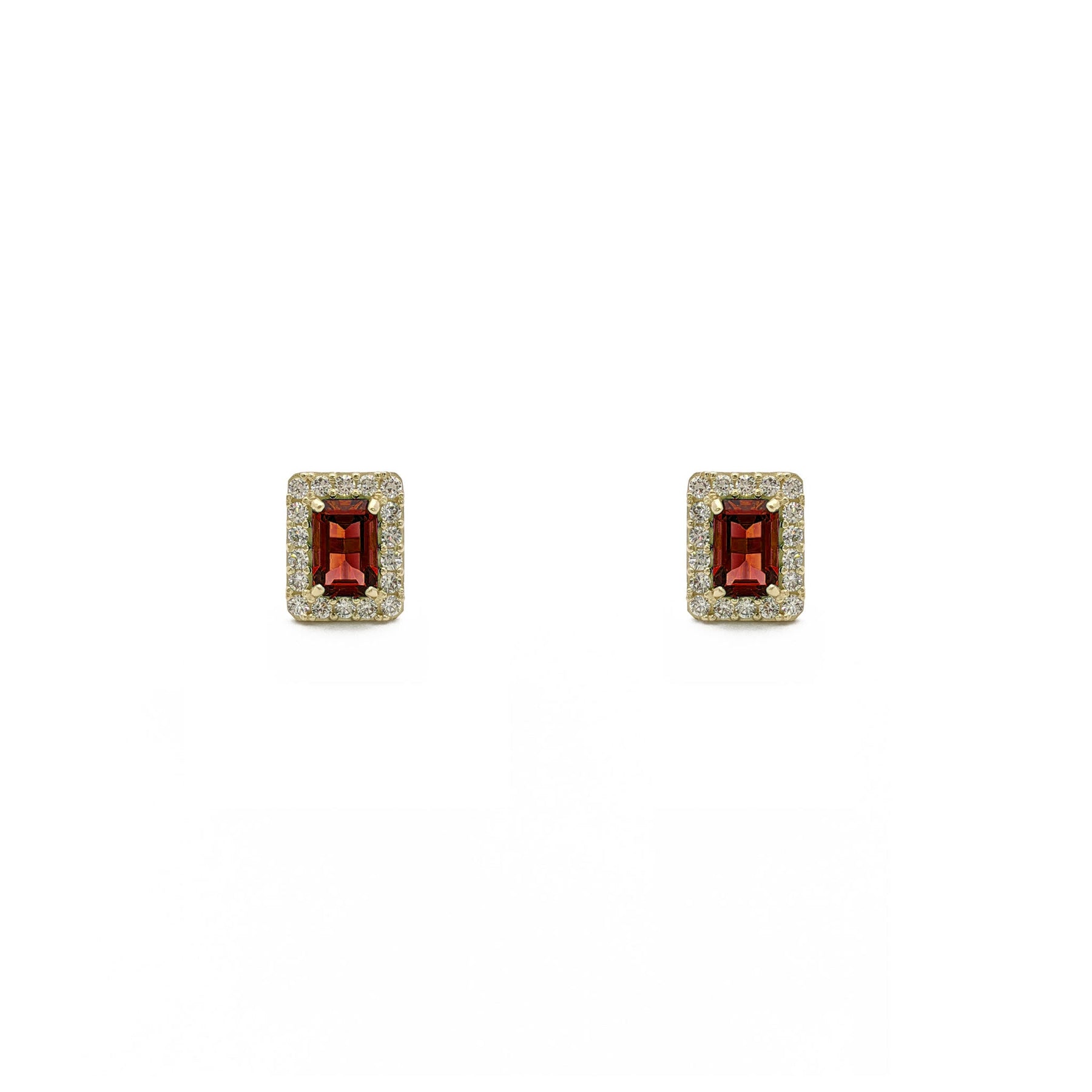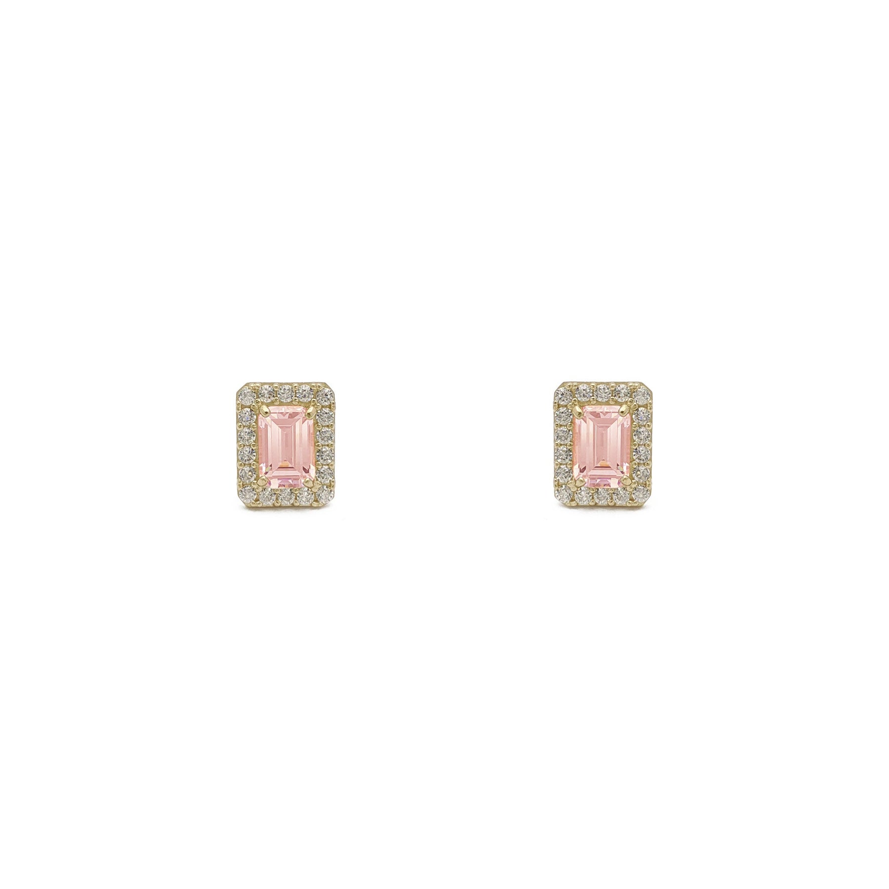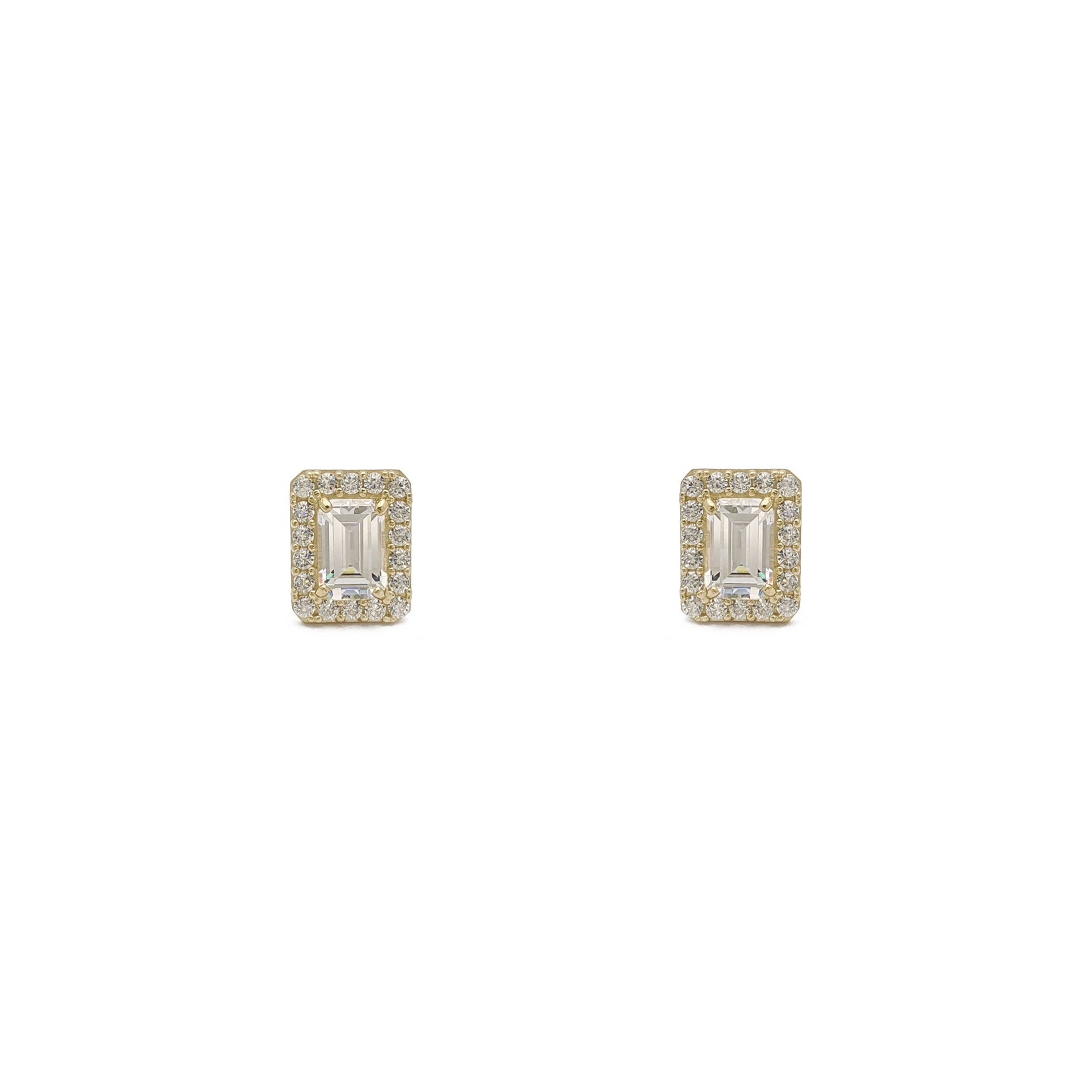 Emerald-Cut Gemstone Halo Earrings white (14K) - front - Lucky Diamond - New York