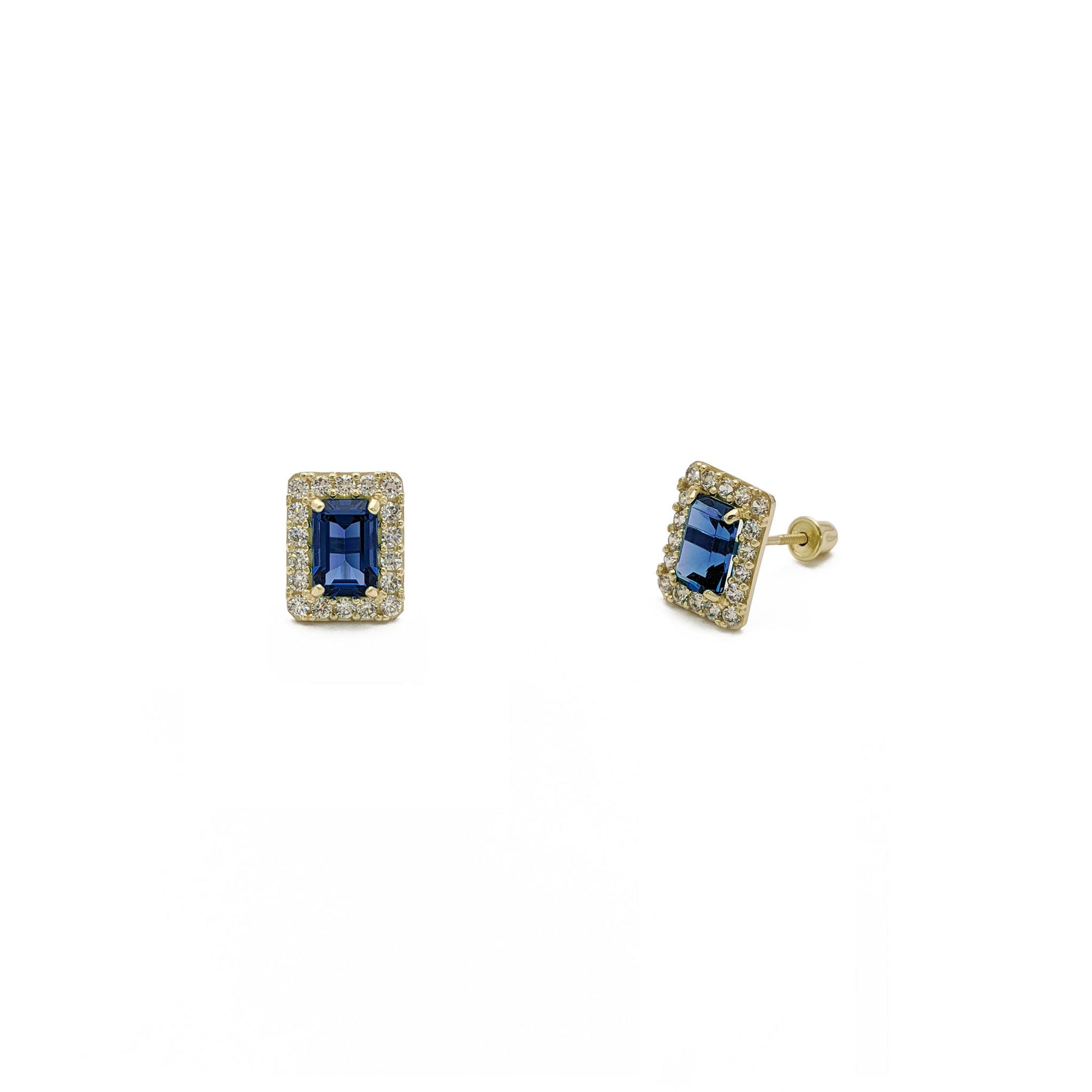 Emerald-Cut Gemstone Halo Earrings blue (14K) - side - Lucky Diamond - New York