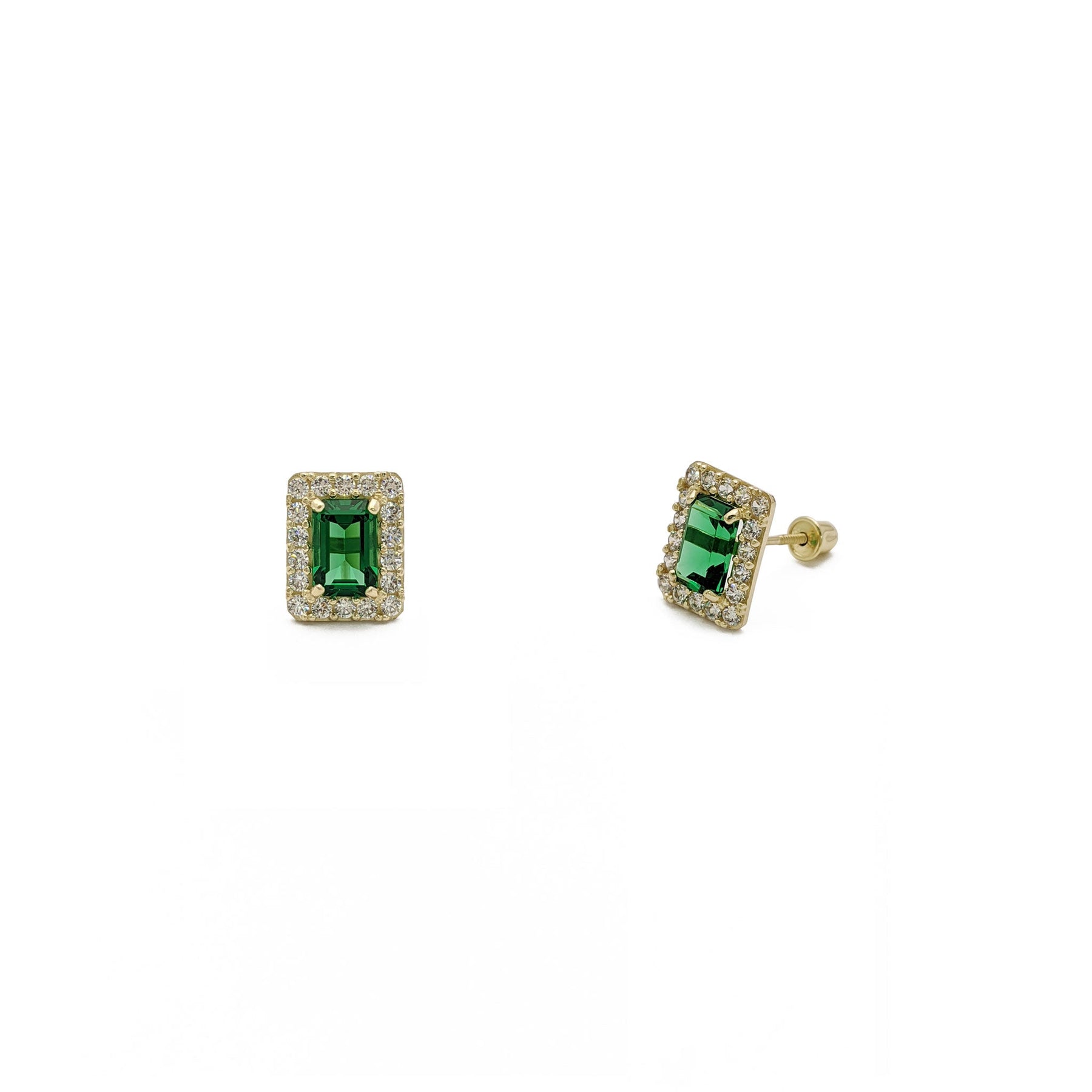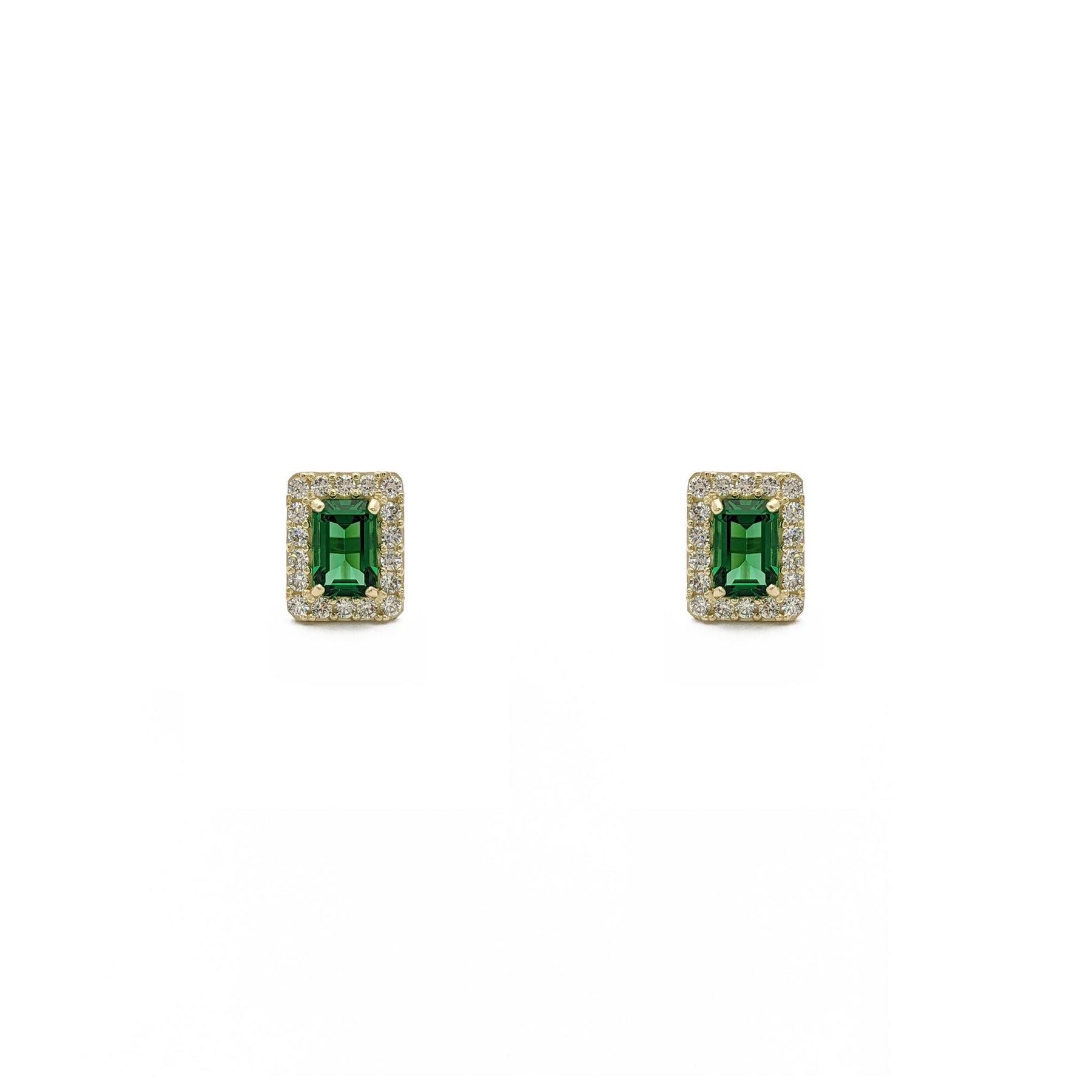 Emerald-Cut Gemstone Halo Earrings green (14K) - front - Lucky Diamond - New York