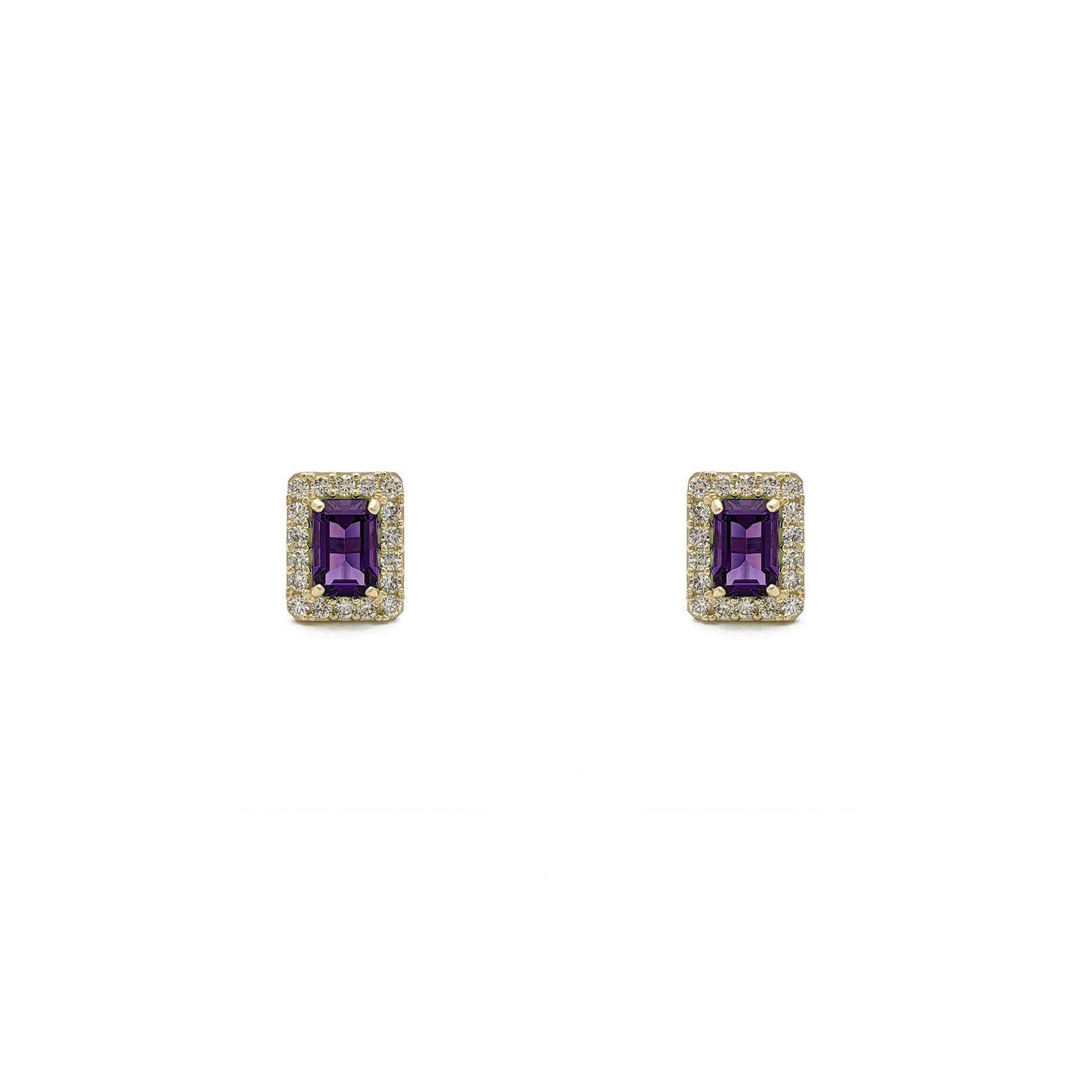 Emerald-Cut Gemstone Halo Earrings purple (14K) - front - Lucky Diamond - New York