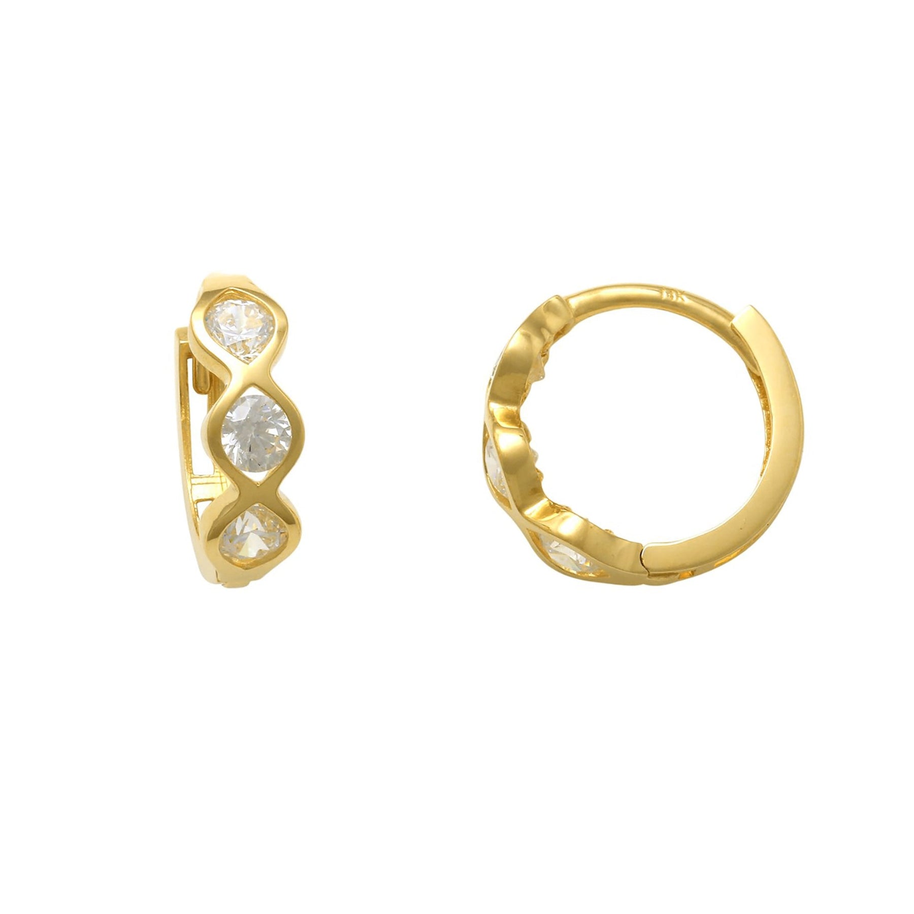 Zirconia Bezel Huggie Earrings (14K) Lucky Diamond New York