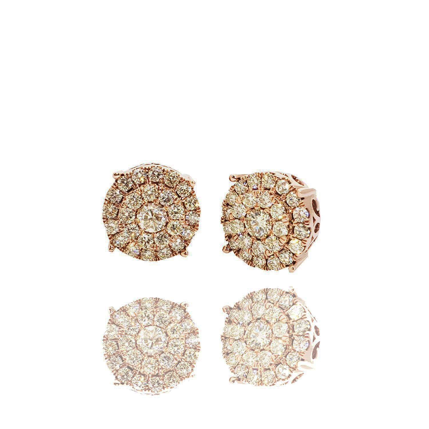 Grand Cluster Diamond Stud Rose Gold Earrings (14K)