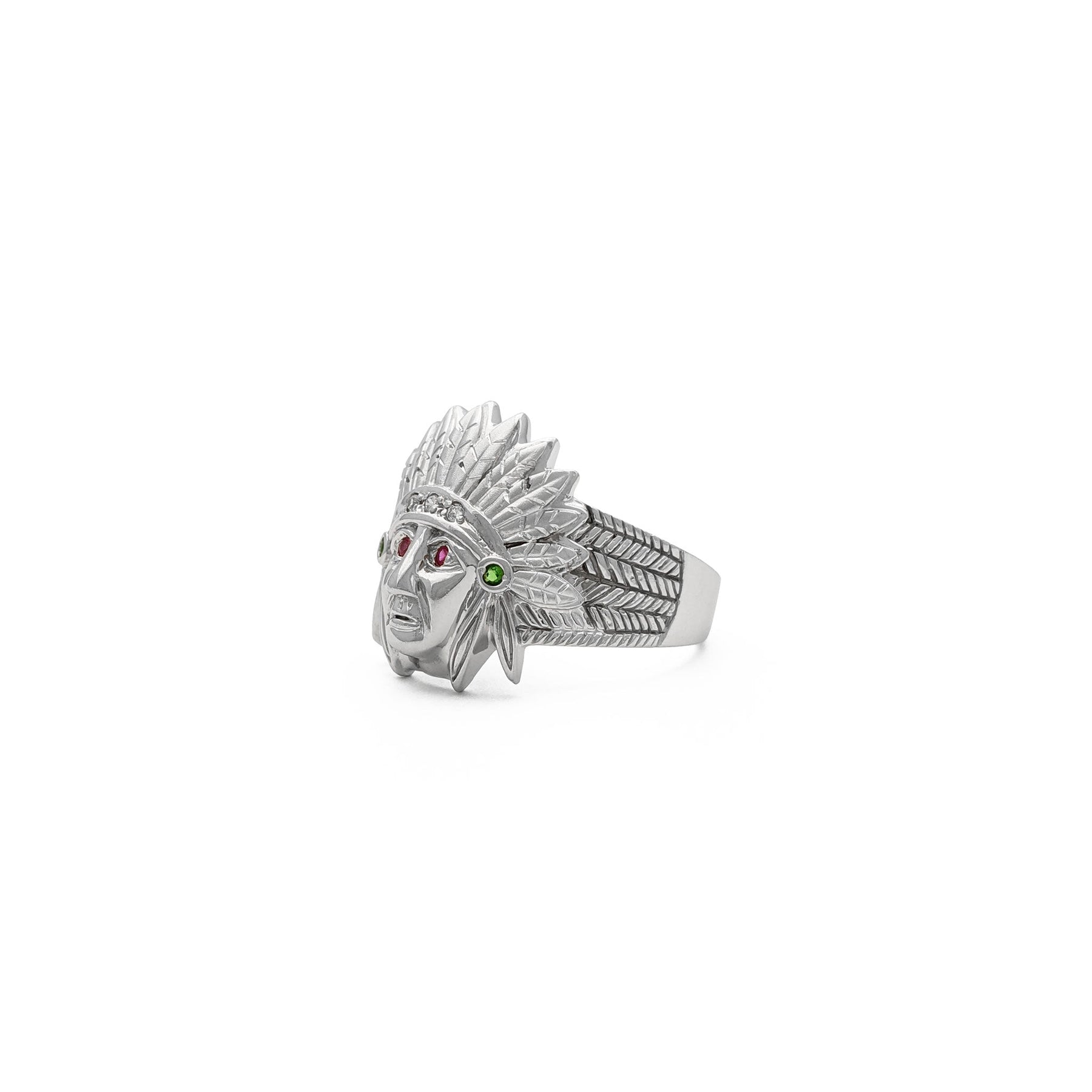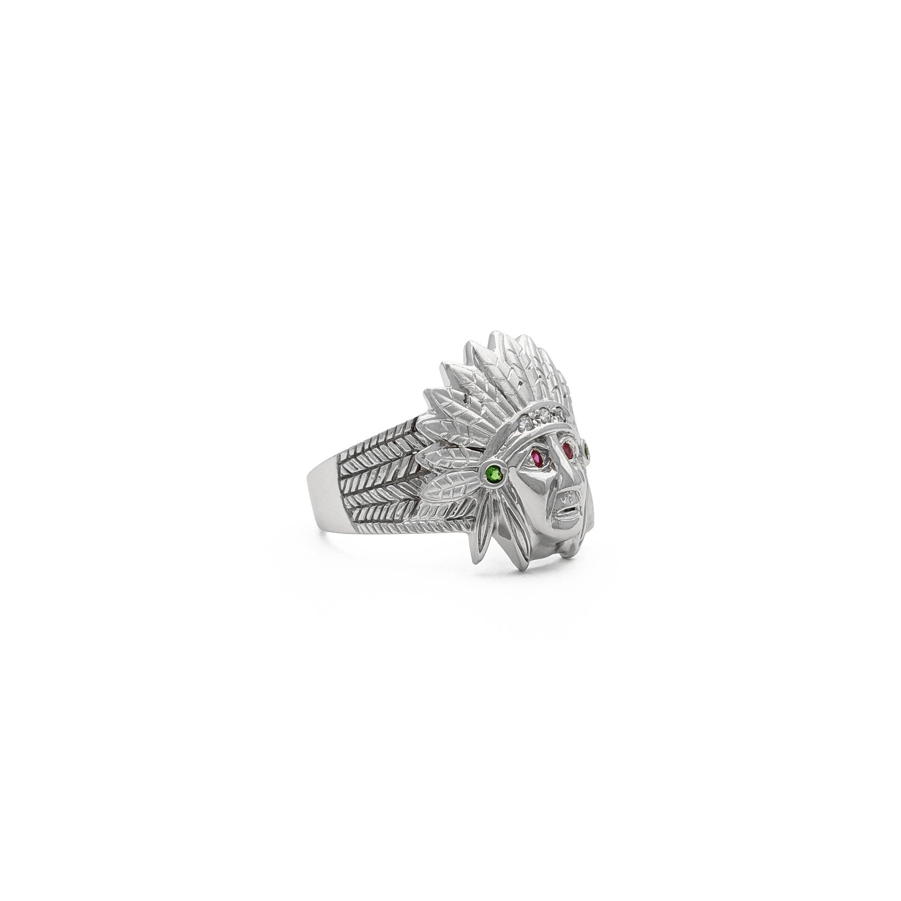 White Gold Native American Chief Ring (14K) side 1 - Lucky Diamond - New York