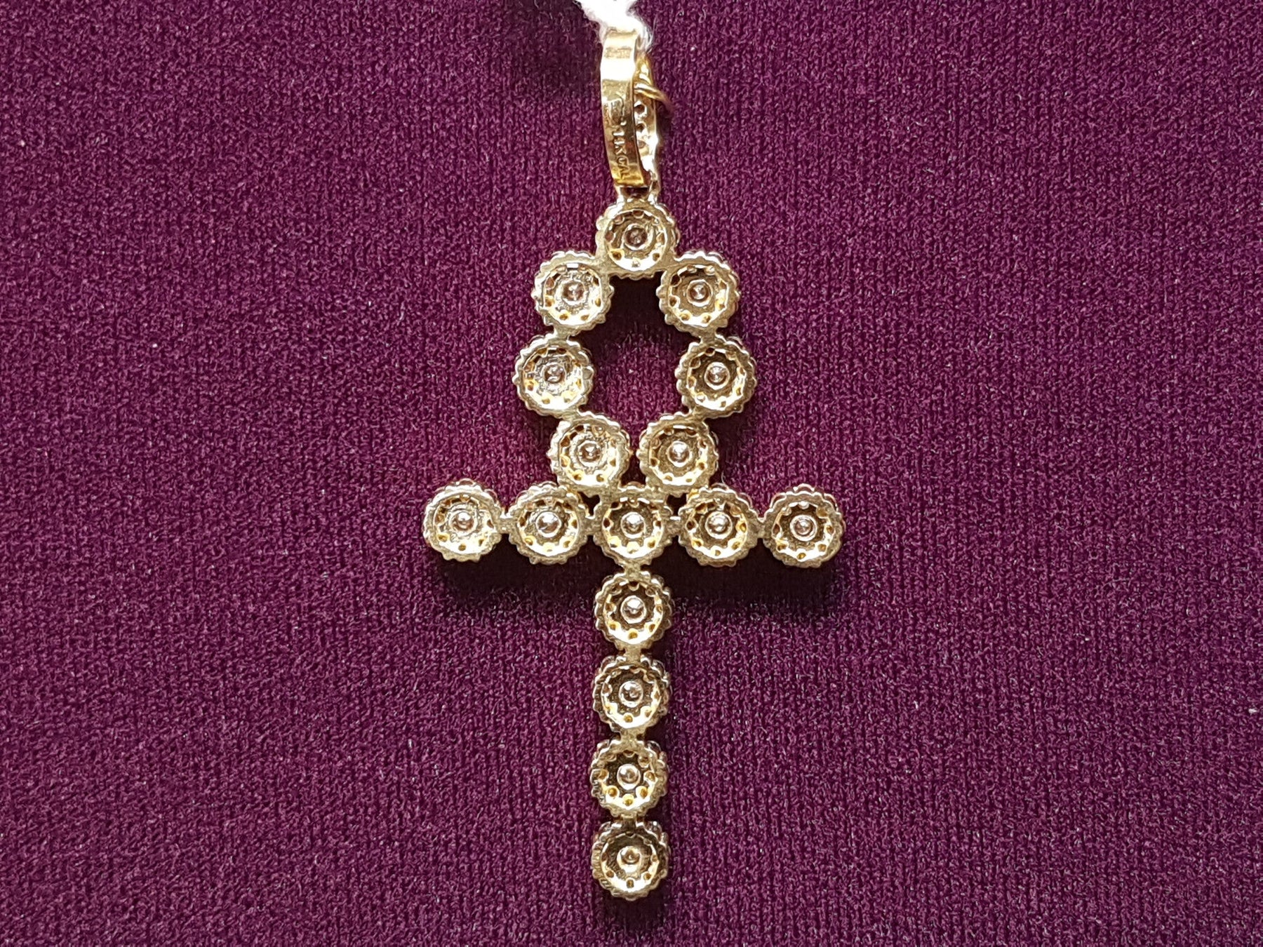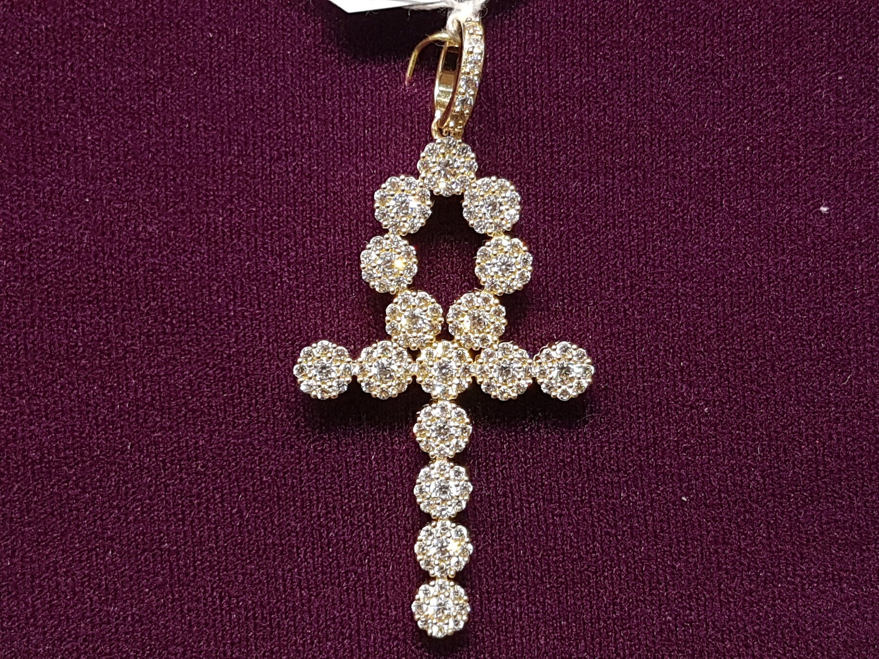 Each segment in this ankh pendant contains a bed of CZ stones in a halo setting.