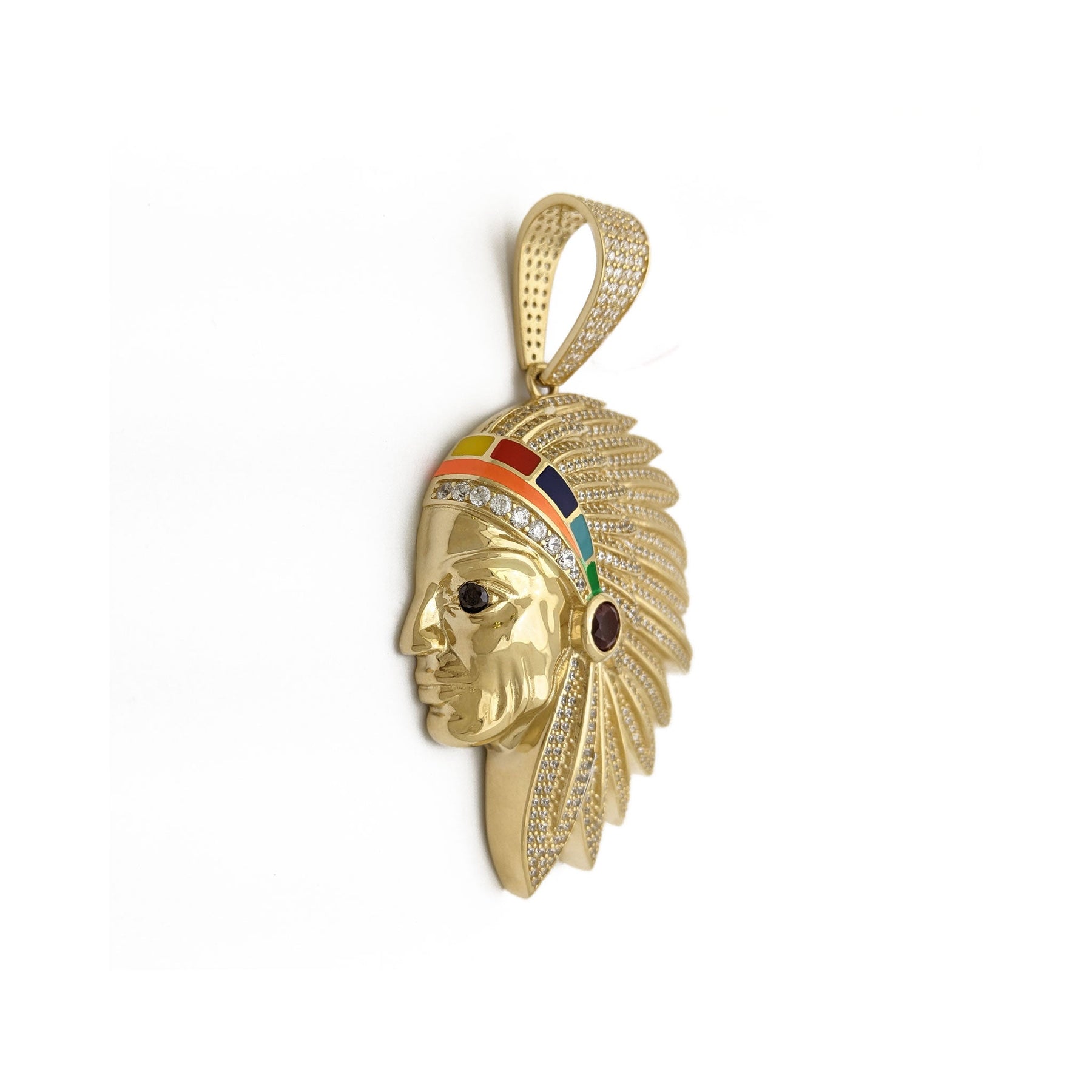 Native American Chief Profile Enameled Pendant (14K) front - Lucky Diamond - New York