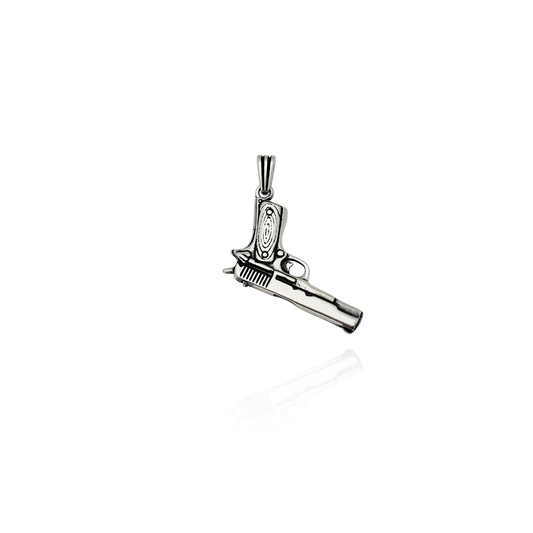 Antique-Finish Pistol Pendant (Silver)