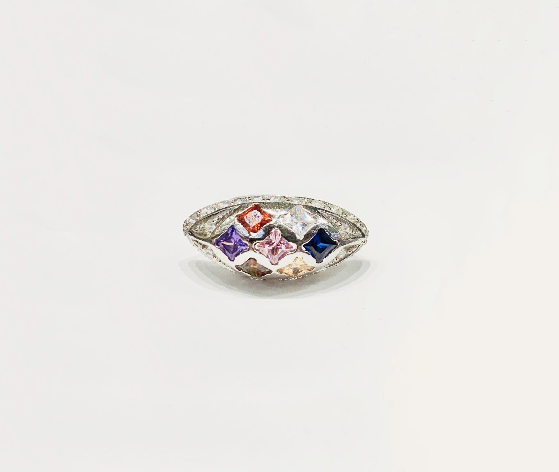 This is a brilliant multi-color cocktail Ring with artificial stones.