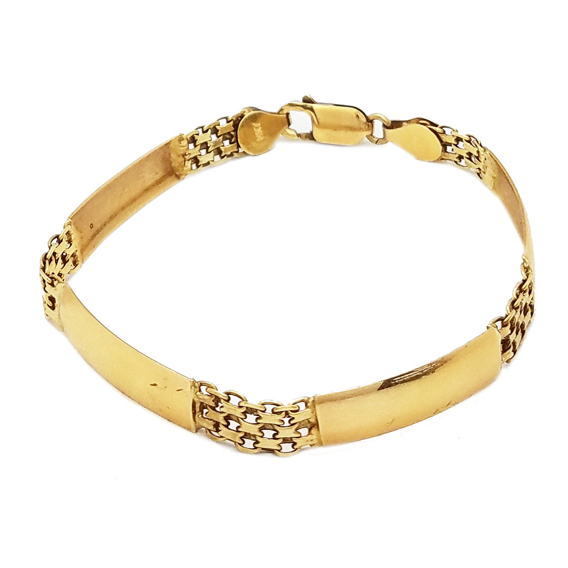 This is a Mesh/Solid Yellow Gold Bracelet (14K) made for women who wish to show an elegant mesh see-through bracelet. This piece of art will surely cativate the eyes of many for its unique style and yellow gold color.
