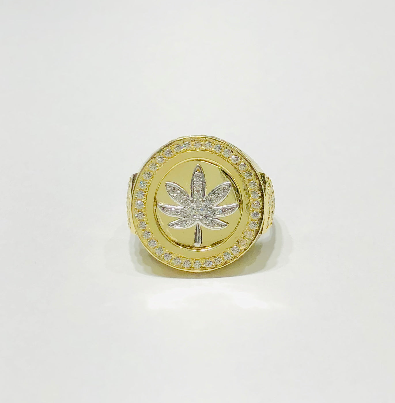 Two-Tone Gold Cannabis CZ Ring (10K)