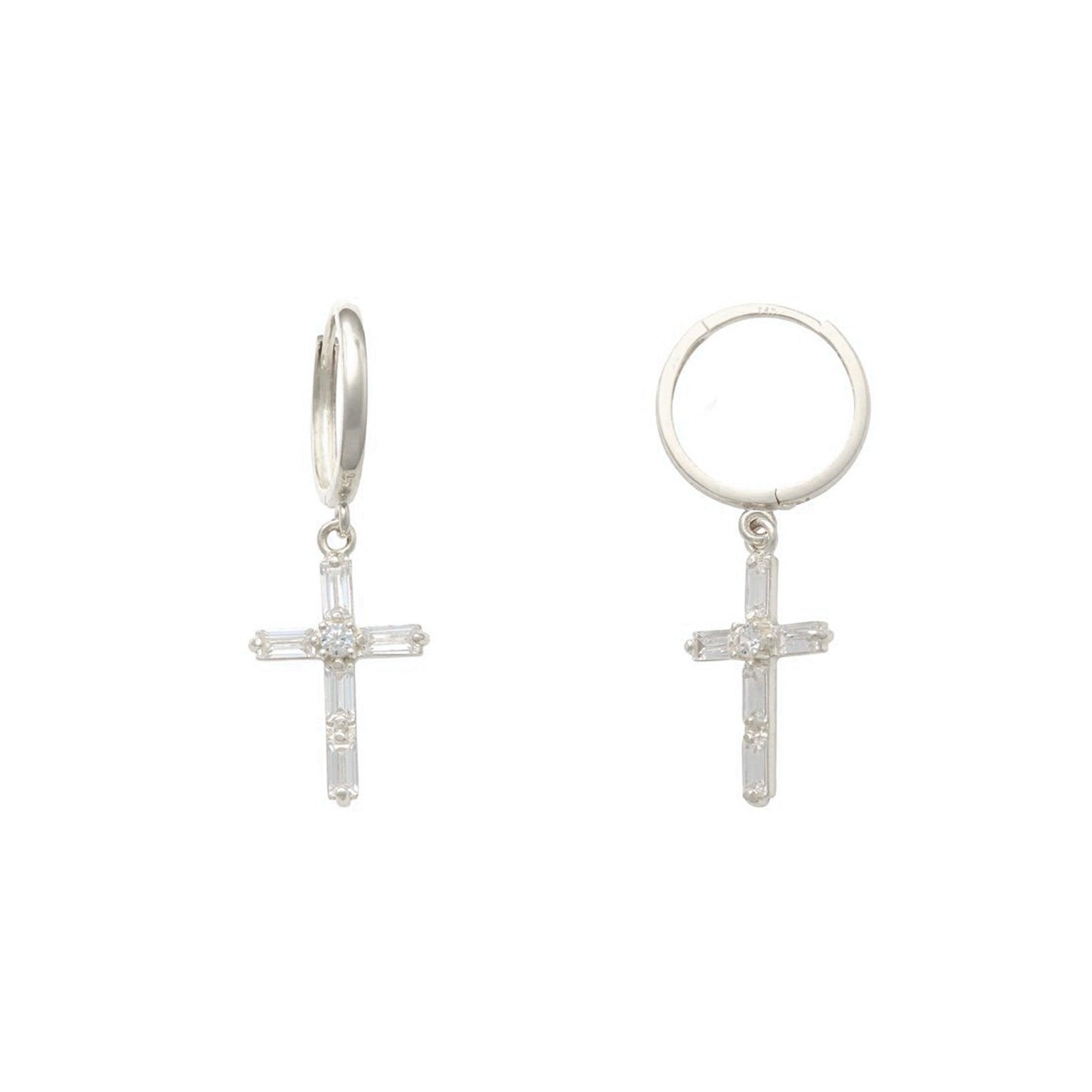 White Gold Baguettes Cross Earrings (14K) Lucky Diamond New York