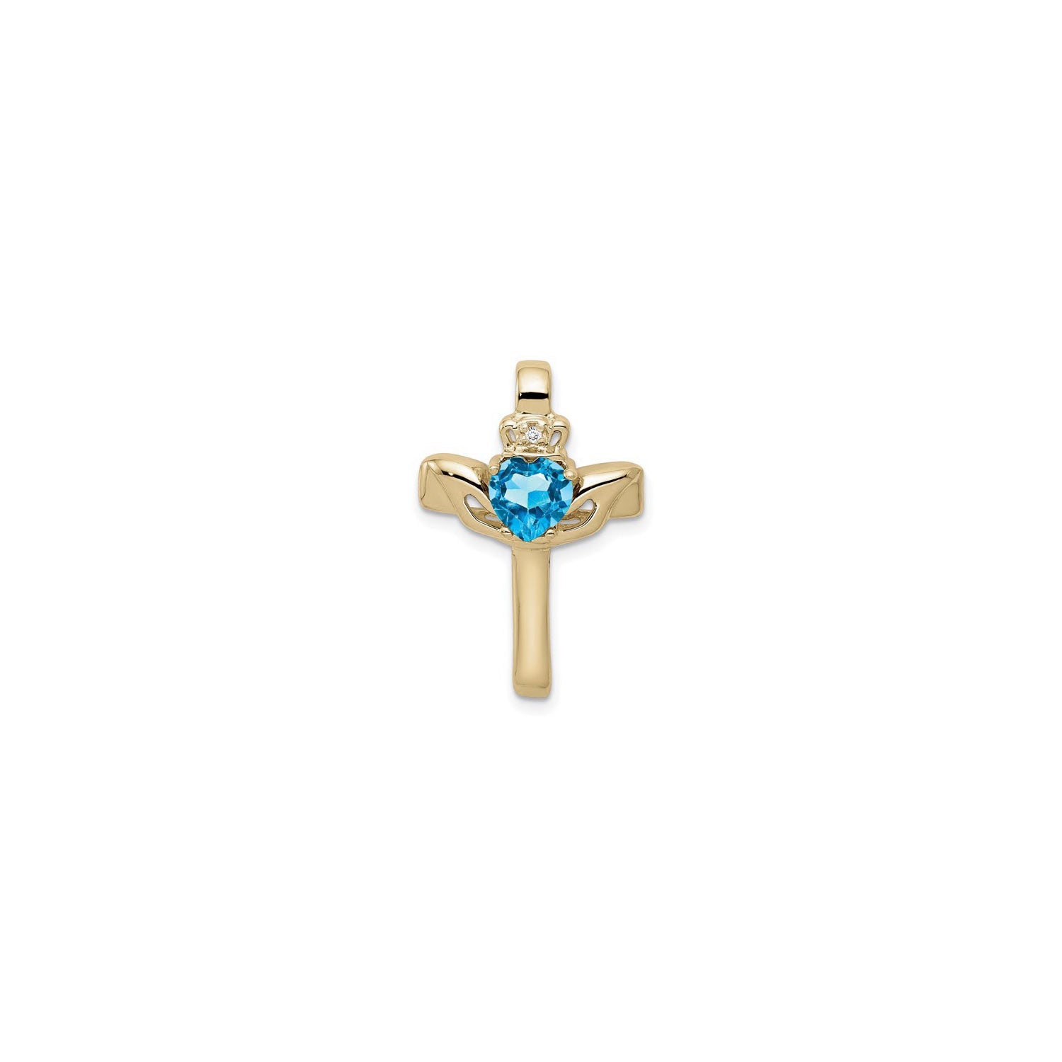 Blue Topaz Claddagh Cross Pendant (14K) front - Lucky Diamond - New York