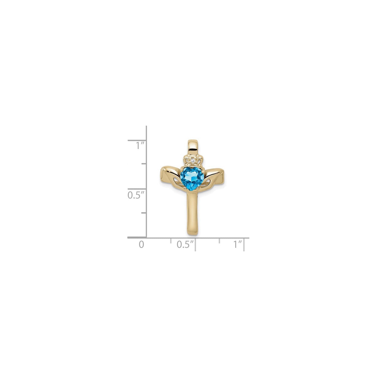 Blue Topaz Claddagh Cross Pendant (14K) scale - Lucky Diamond - New York