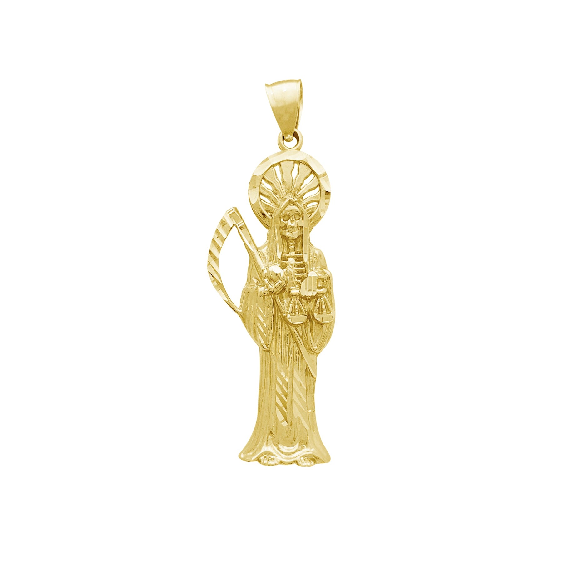 Yellow Gold Diamond Cut Santa Muerte Pendant (14K)
