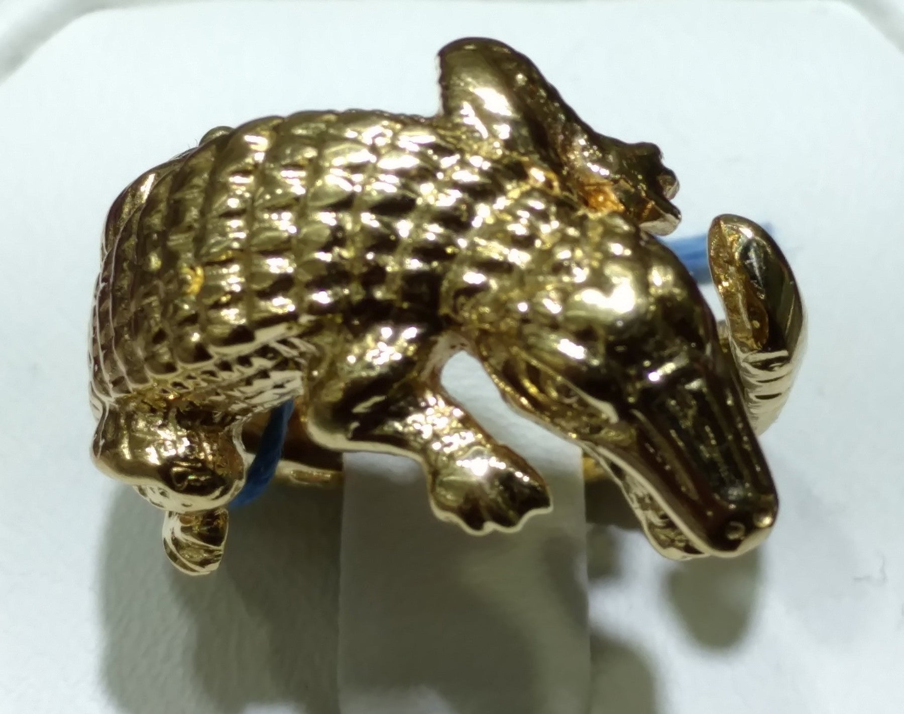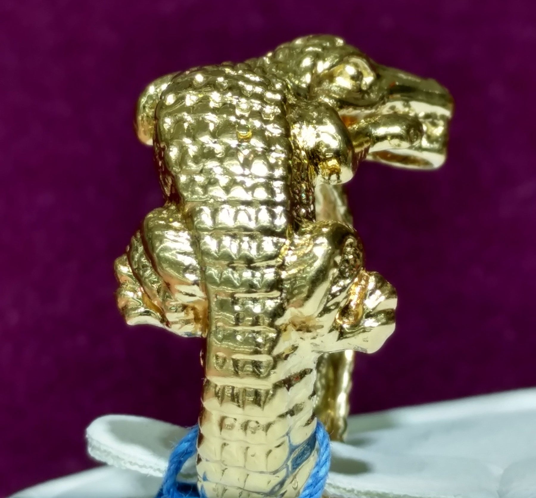 This reptilian-themed ring features a full-bodied, coiled alligator.