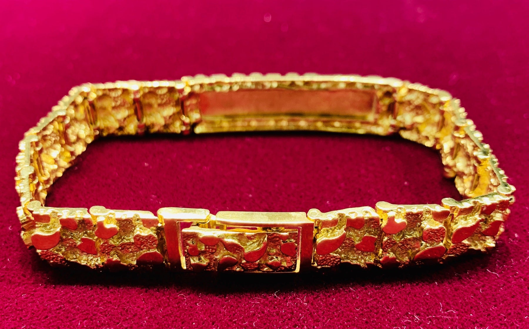 This is a nice Nugget style bracelet 14K Yellow gold.
