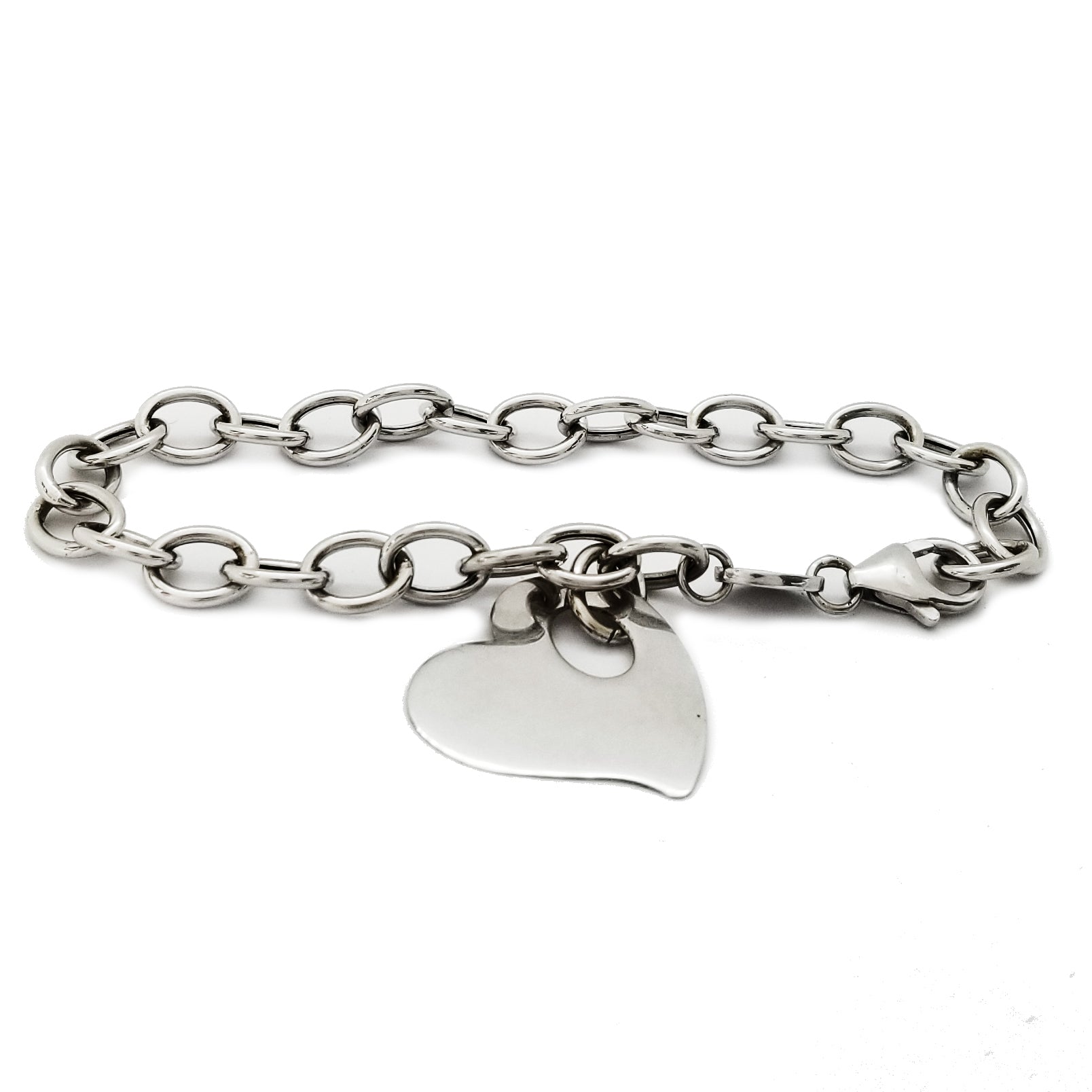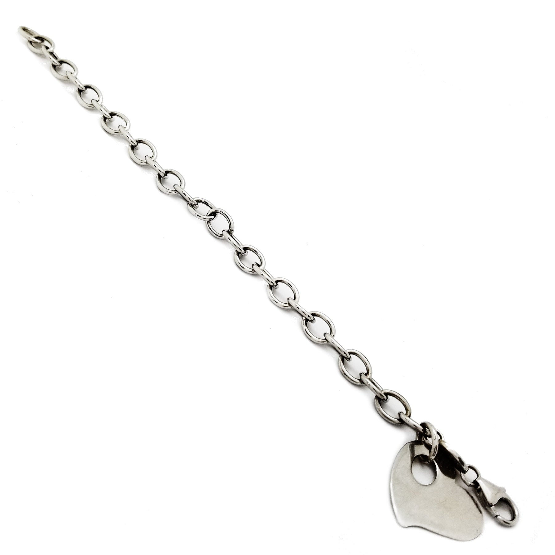This is a Heart Loop White Gold Bracelet (14K) made from the pure solid white gold. This is was made specifically for those who praise the power of love. This piece is the perfect gift/bracelet for any special occasion. This piece of art has a heart charm that can be engrave on the surface with a name. .