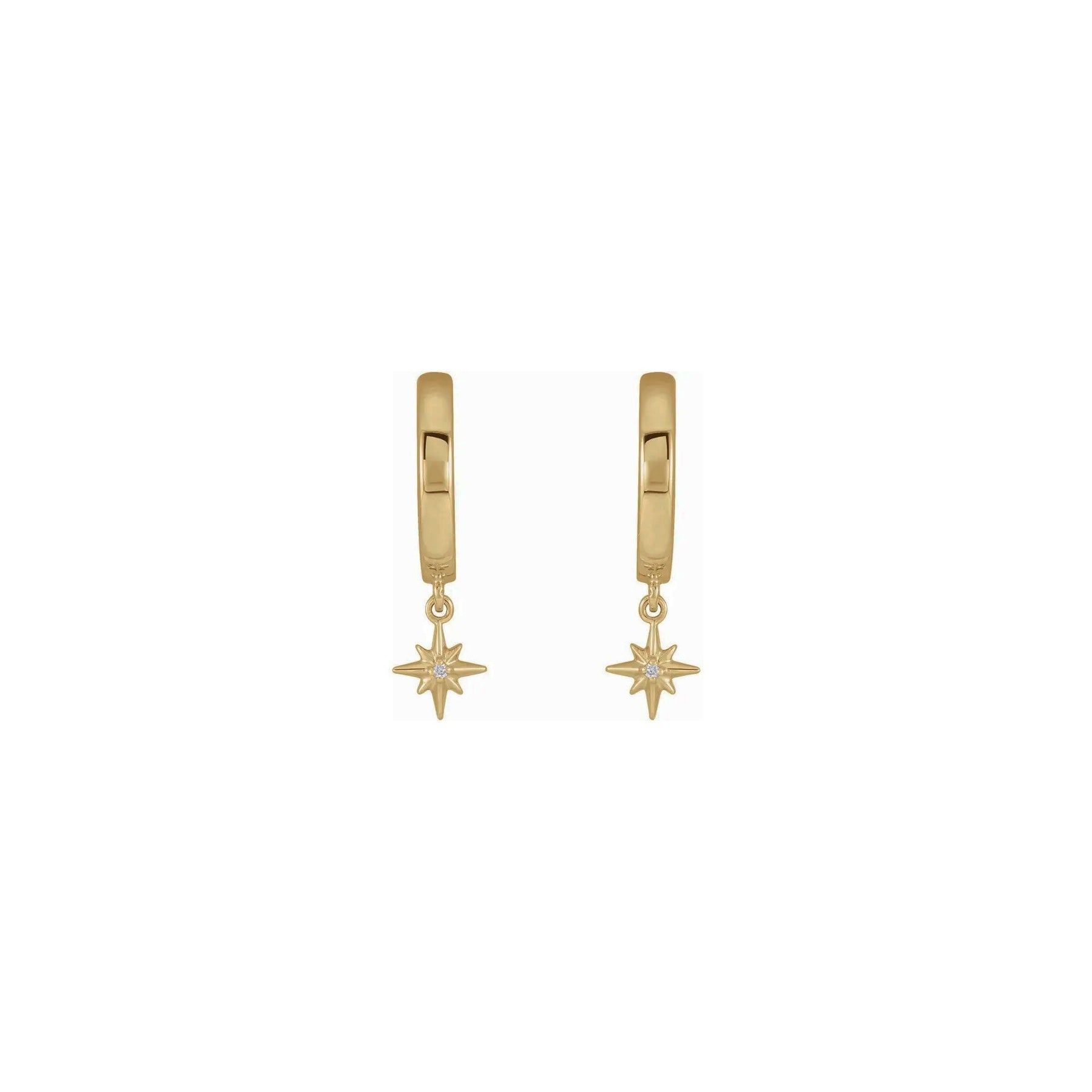 Diamond Celestial Star Hanging Hoop Earrings (14K) front - Lucky Diamond - New York