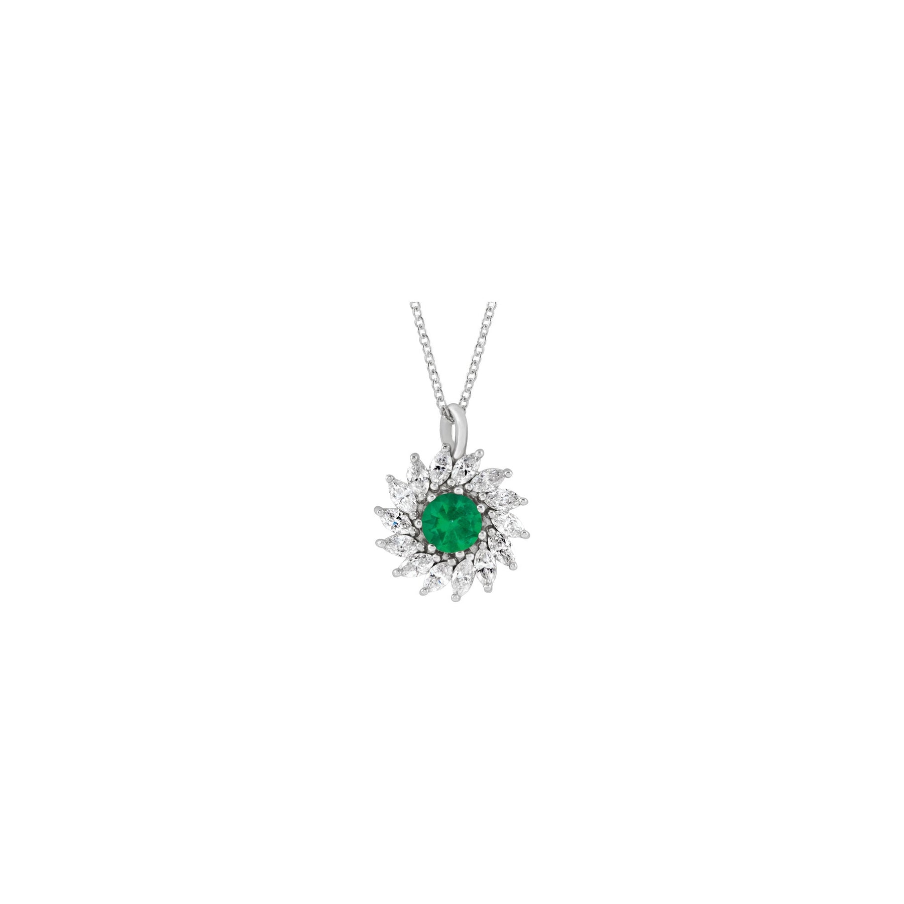 Natural Emerald and Marquise Diamond Halo Necklace (White 14K) front - Lucky Diamond - New York