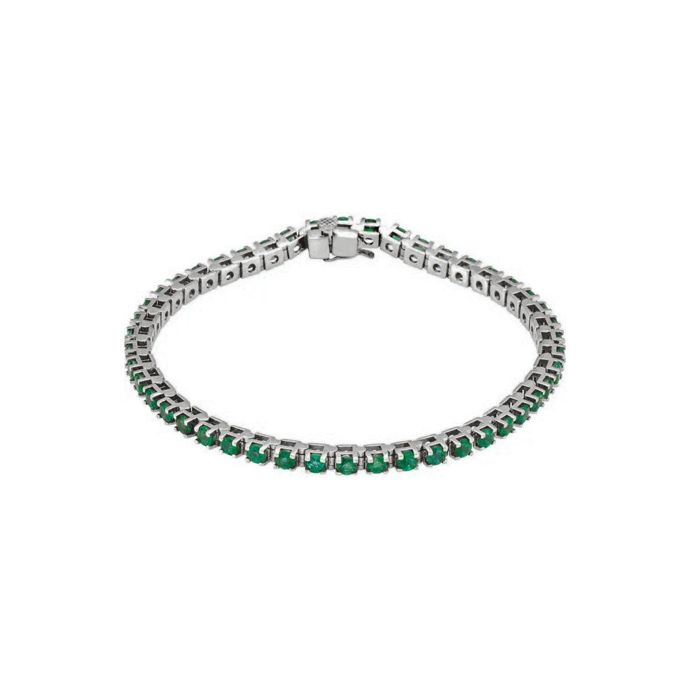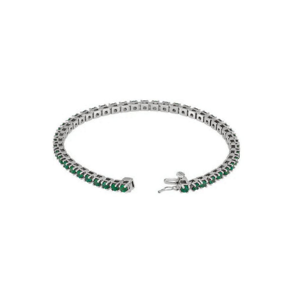 Natural Round Emerald Line Bracelet white (14K) main - Lucky Diamond - New York
