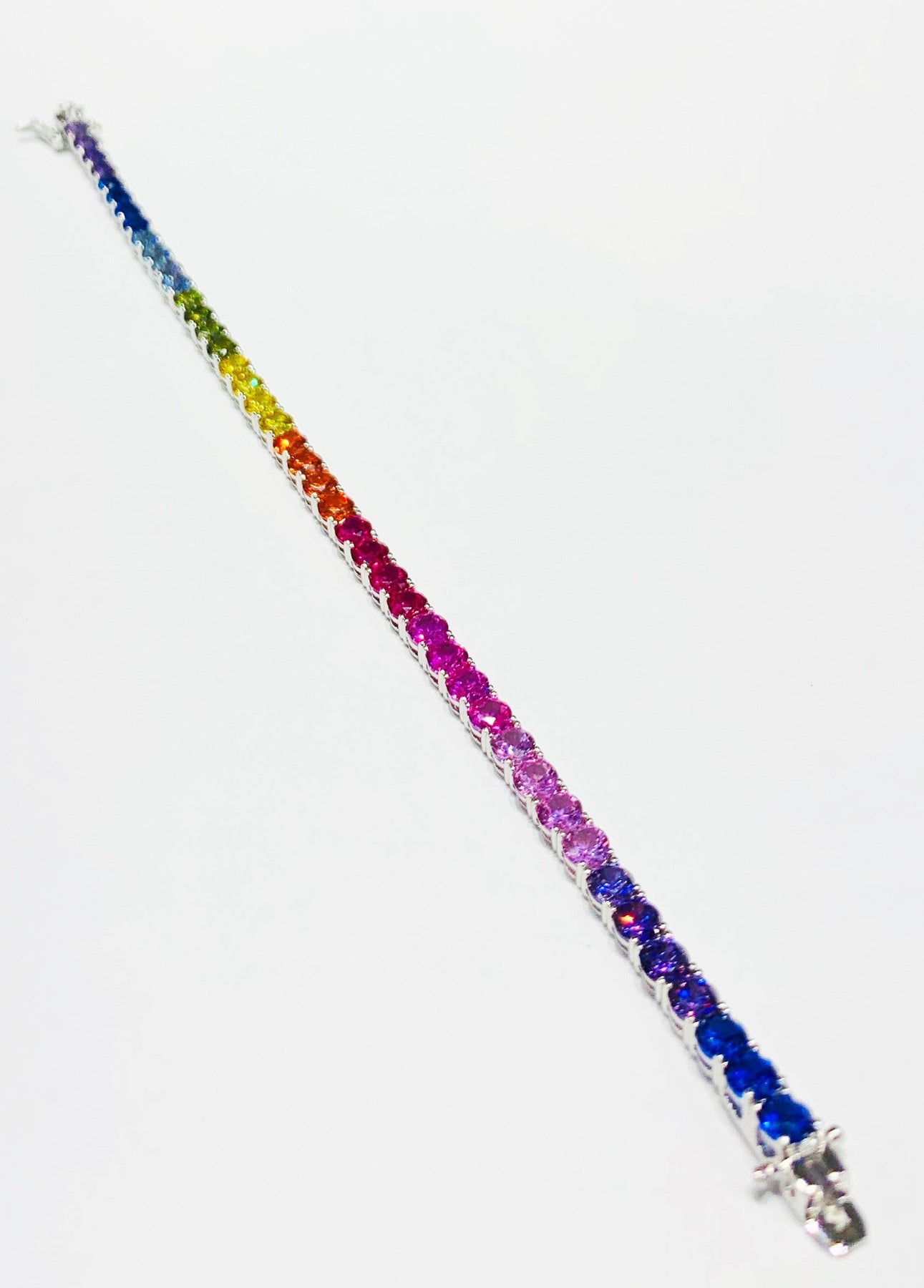 This is a brilliant multicolor Tennis bracelet with artificial stones.