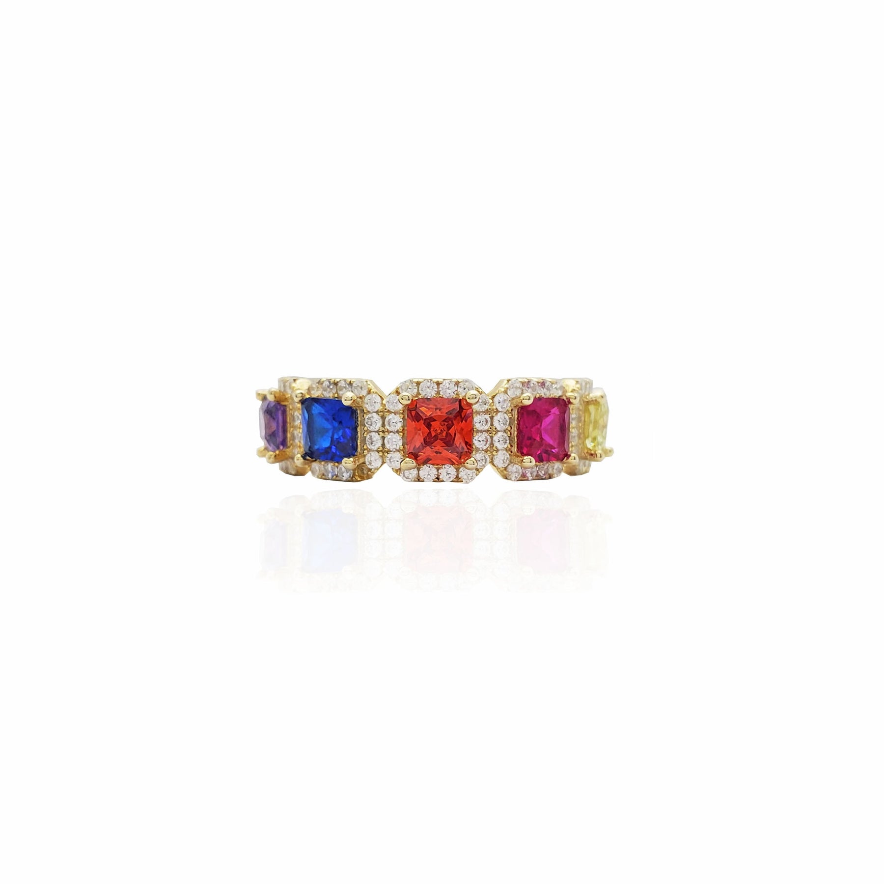 Multicolor Cushion-Cut Stone Halo Band (Silver)