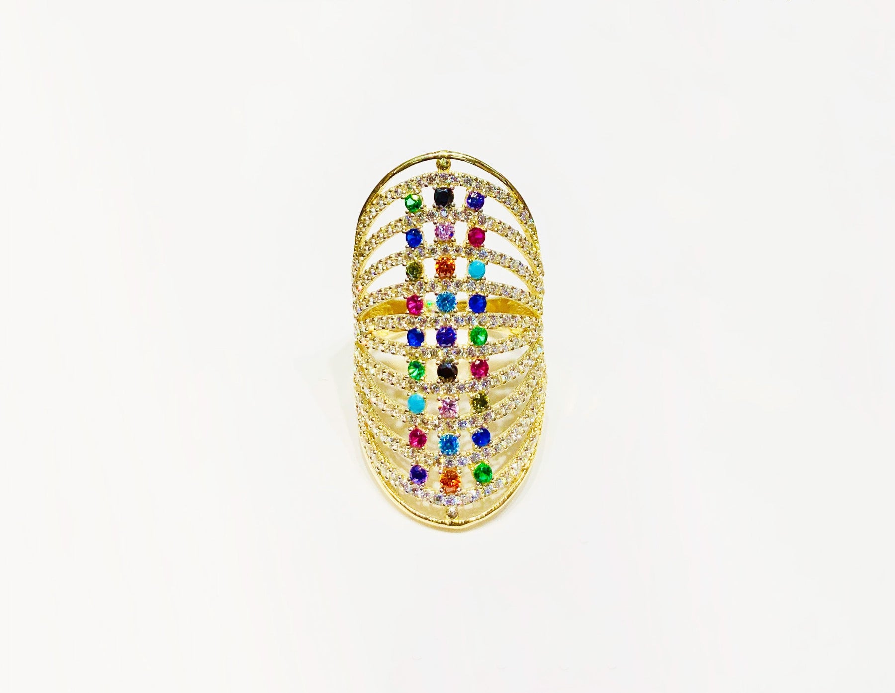 Multi-Colored Cocktail CZ Ring (14K) front - Lucky Diamond - New York