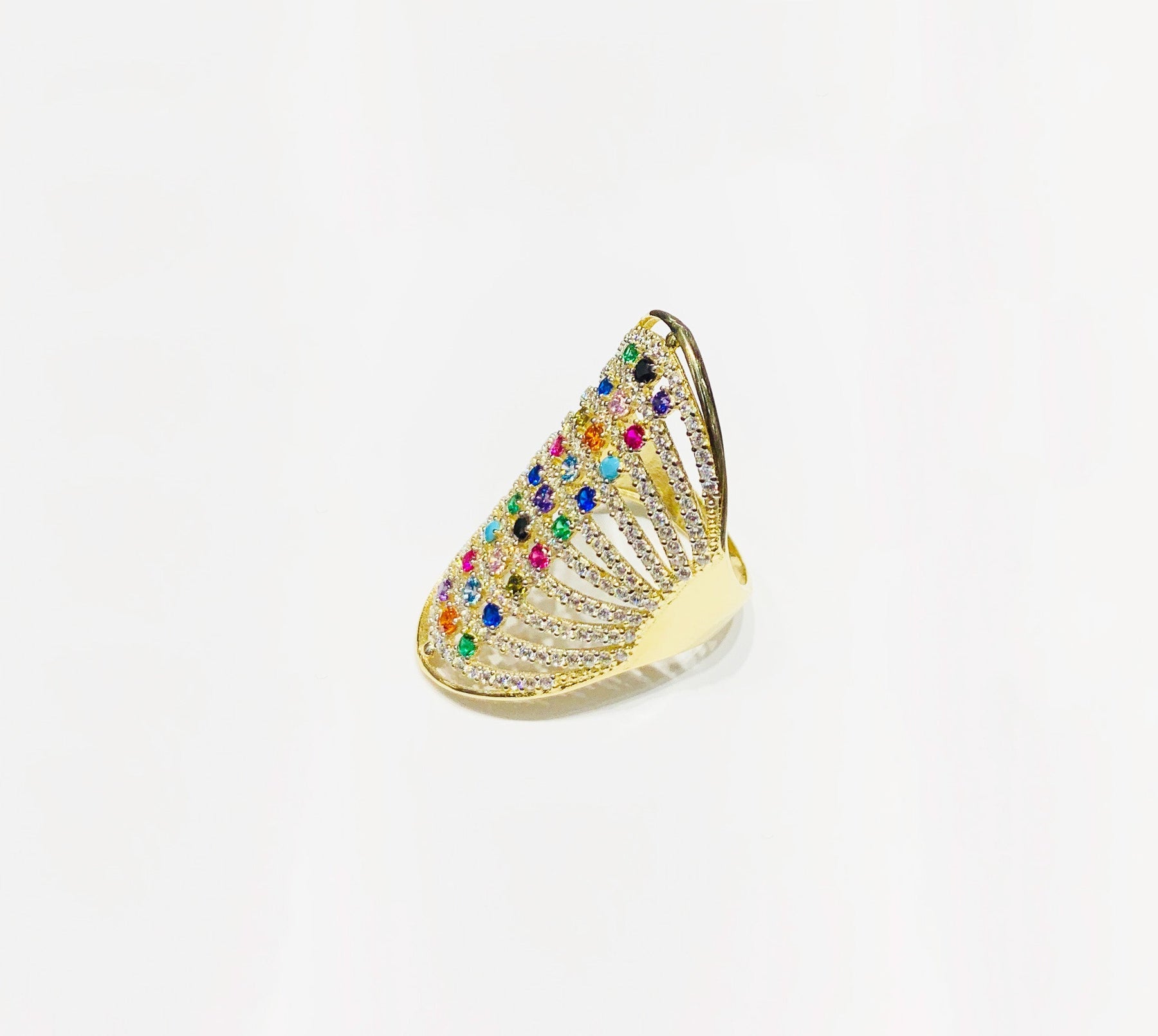 Multi-Colored Cocktail CZ Ring (14K) side - Lucky Diamond - New York