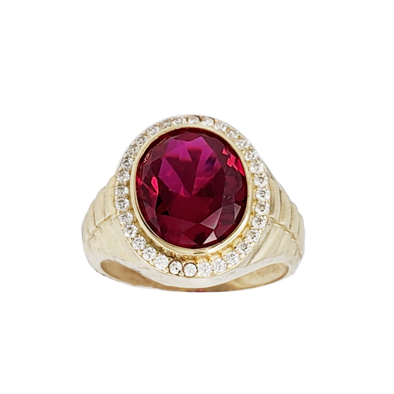 Zirconia Solitaire Oval-Halo Men Ring (14K)
