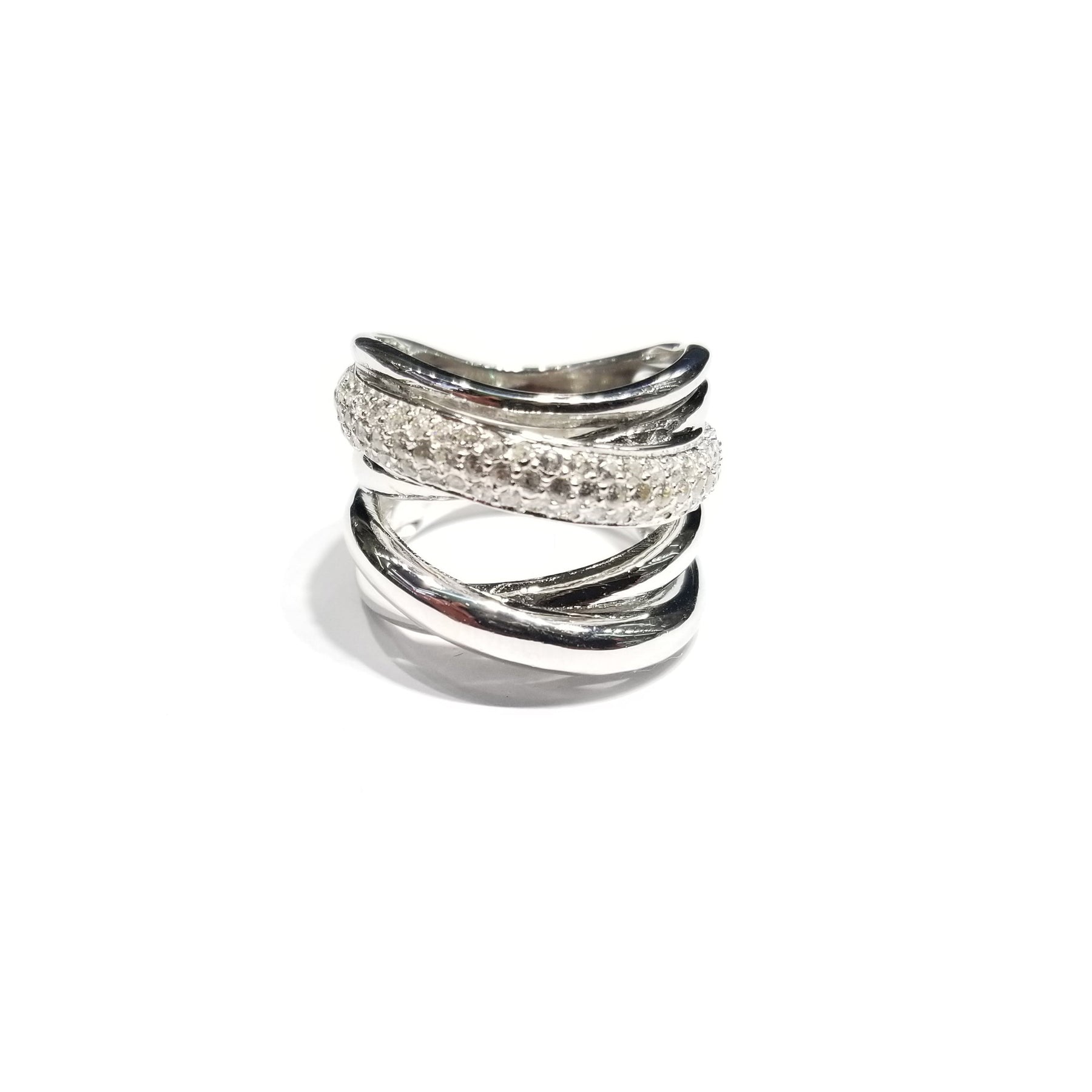 Quad-Bands Solid & Crystalized CZ Ring (Sterling Silver)