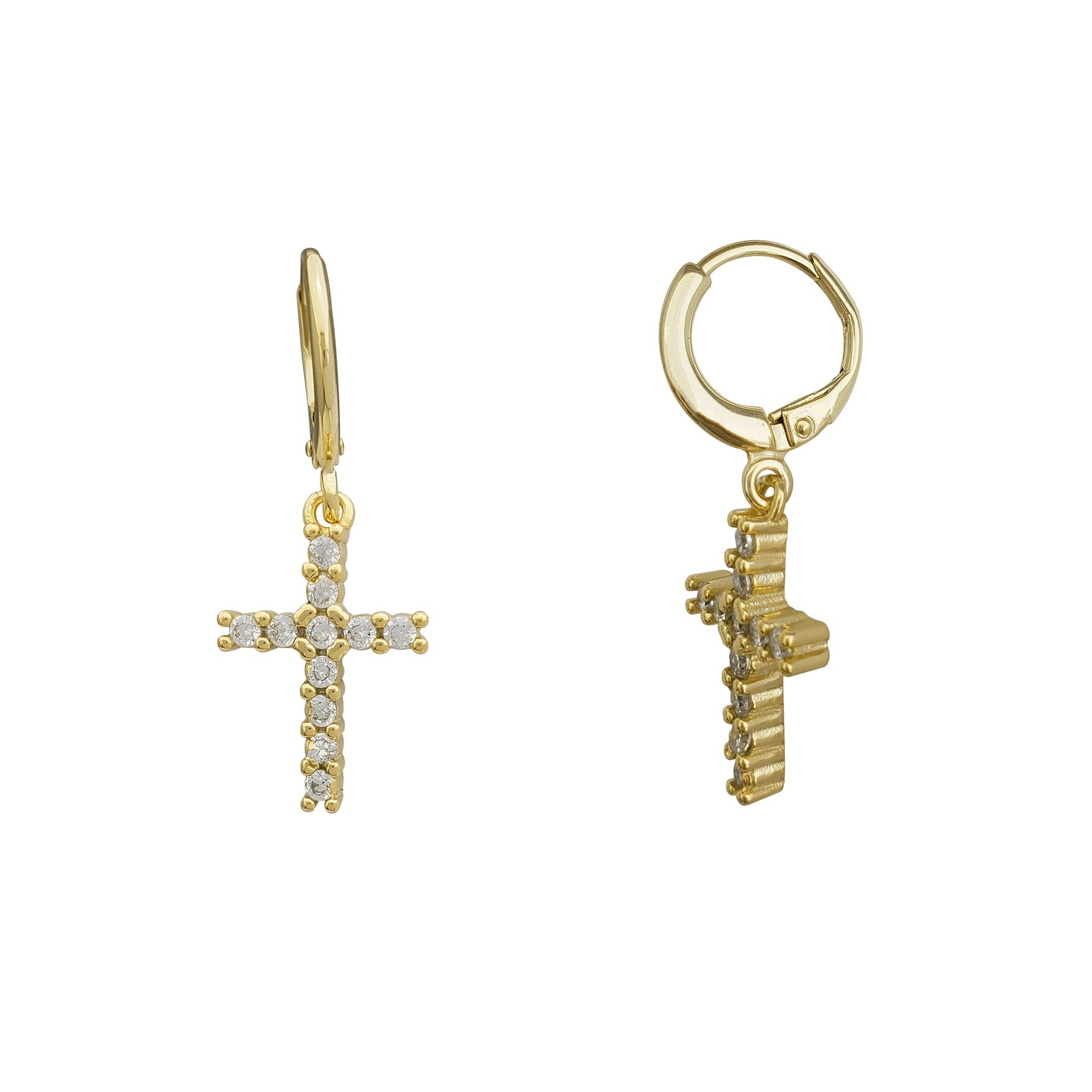 Zirconia Cross Huggie Dangling Earrings (Silver)