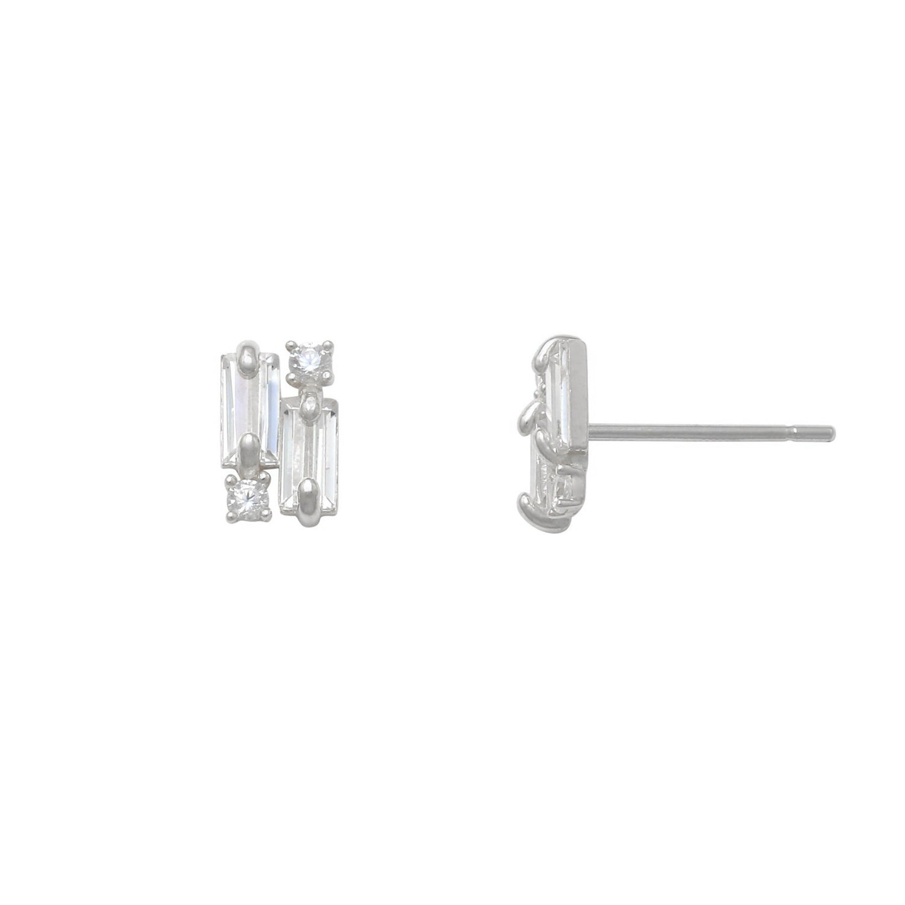 Zirconia Baguettes & Round Stud Earrings (14K)