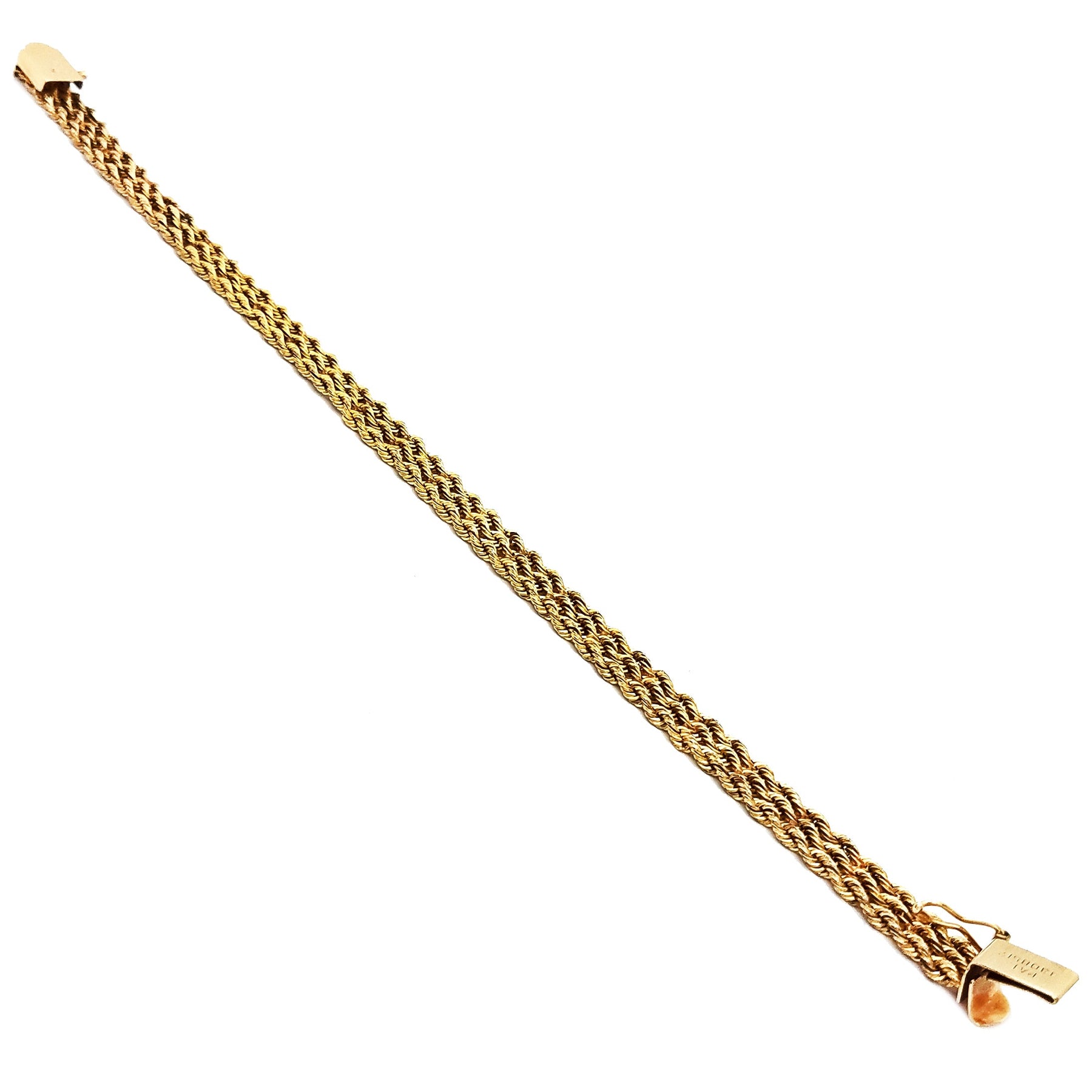 This is a Triple Rope Yellow Gold Bracelet (14K) designed to be light, elegant and old fashioned. This piece brings back old times into modern society. It is meant to stand out the crowd with its pure yellow gold and elegant design. .