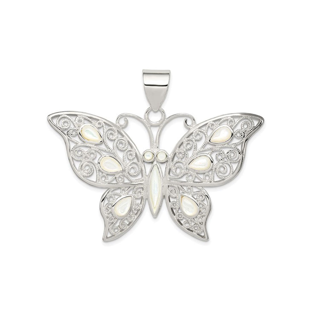 Mother of Pearl Butterfly Pendant (Silver) front - Lucky Diamond - New York