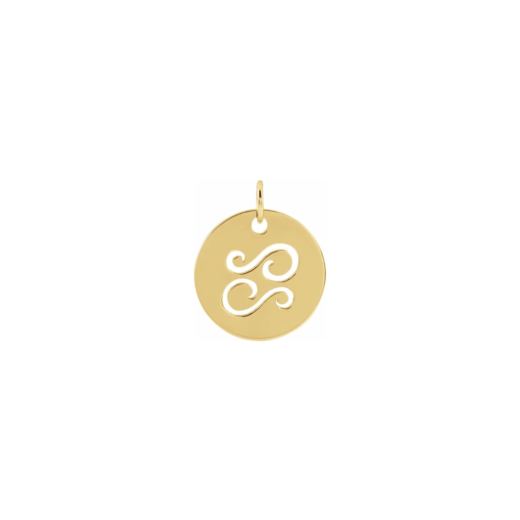 Cancer Zodiac Symbol Disc Pendant yellow (14K) front - Lucky Diamond - New York