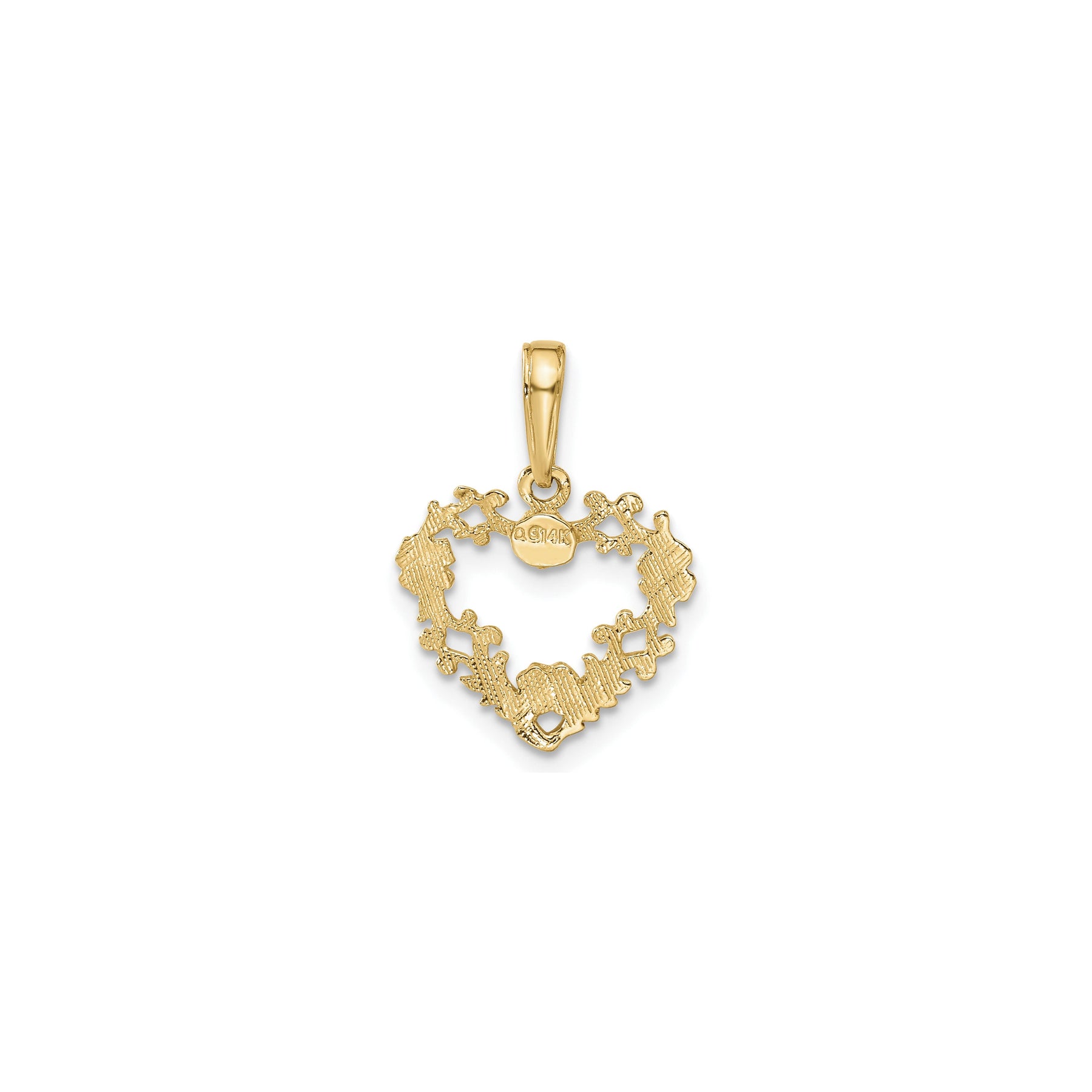 Floral Bordered Heart Outline Pendant (14K) side - Lucky Diamond - New York