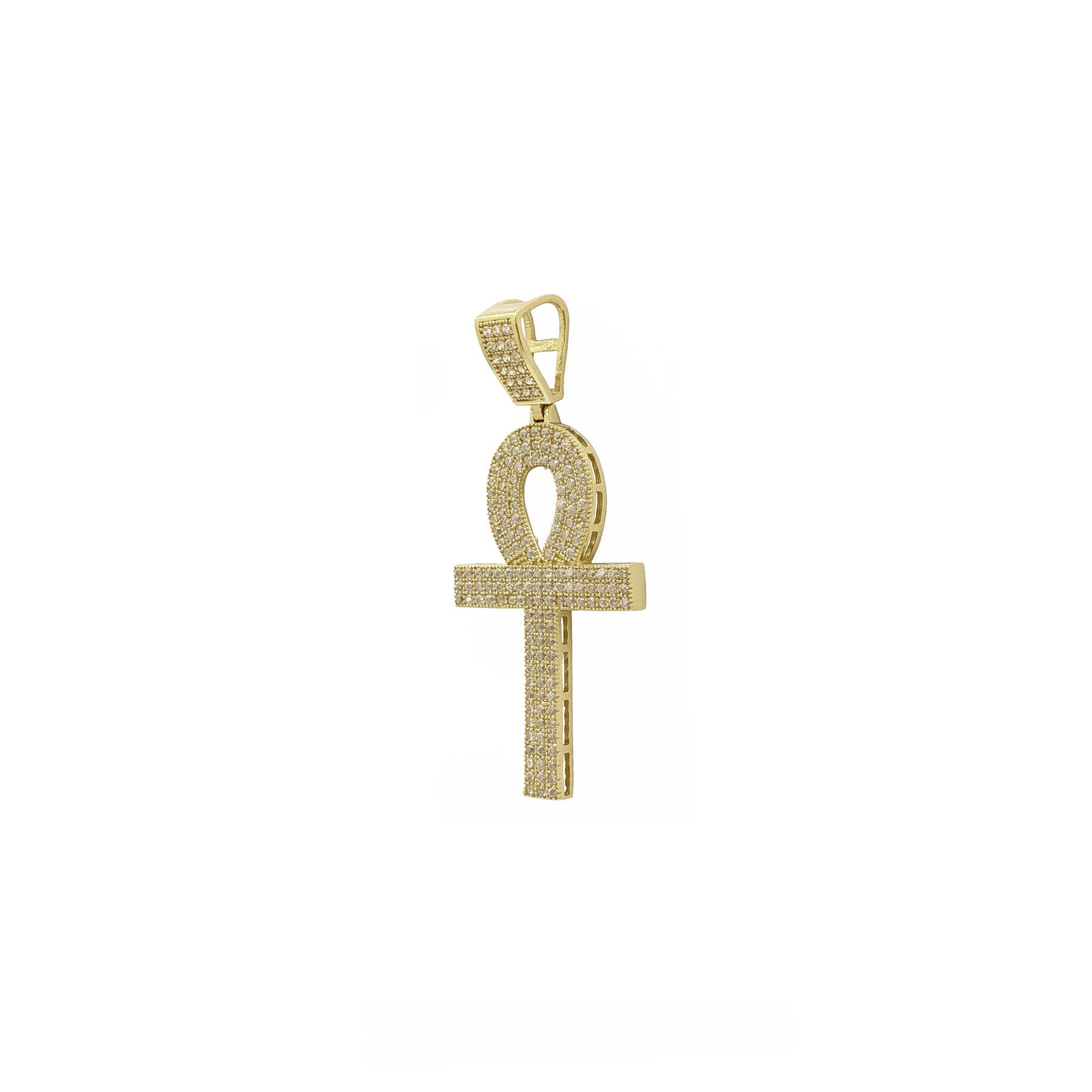 Iced-Out Milgrain Ankh Pendant (14K) side - Lucky Diamond - New York