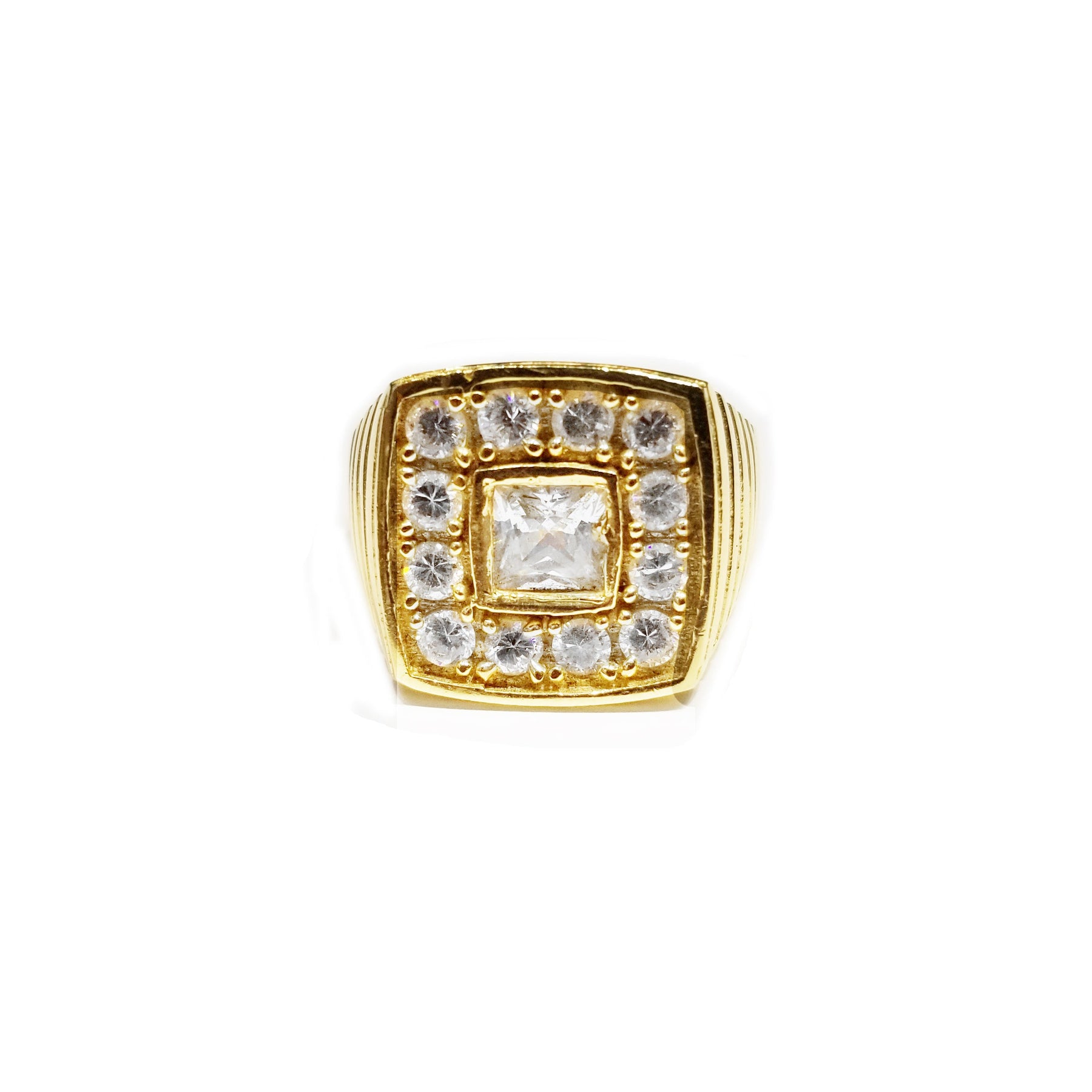 Description: This is a Iced Out Yellow Gold CZ Crystal Cell Ring (14K) made with the highest quality gold metal that has been polished and refined to perfection.