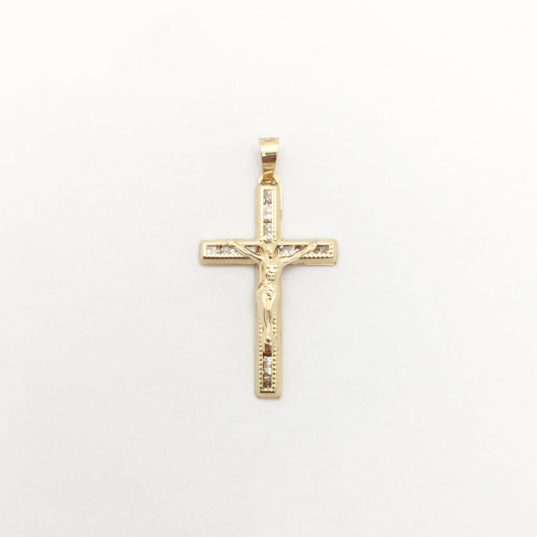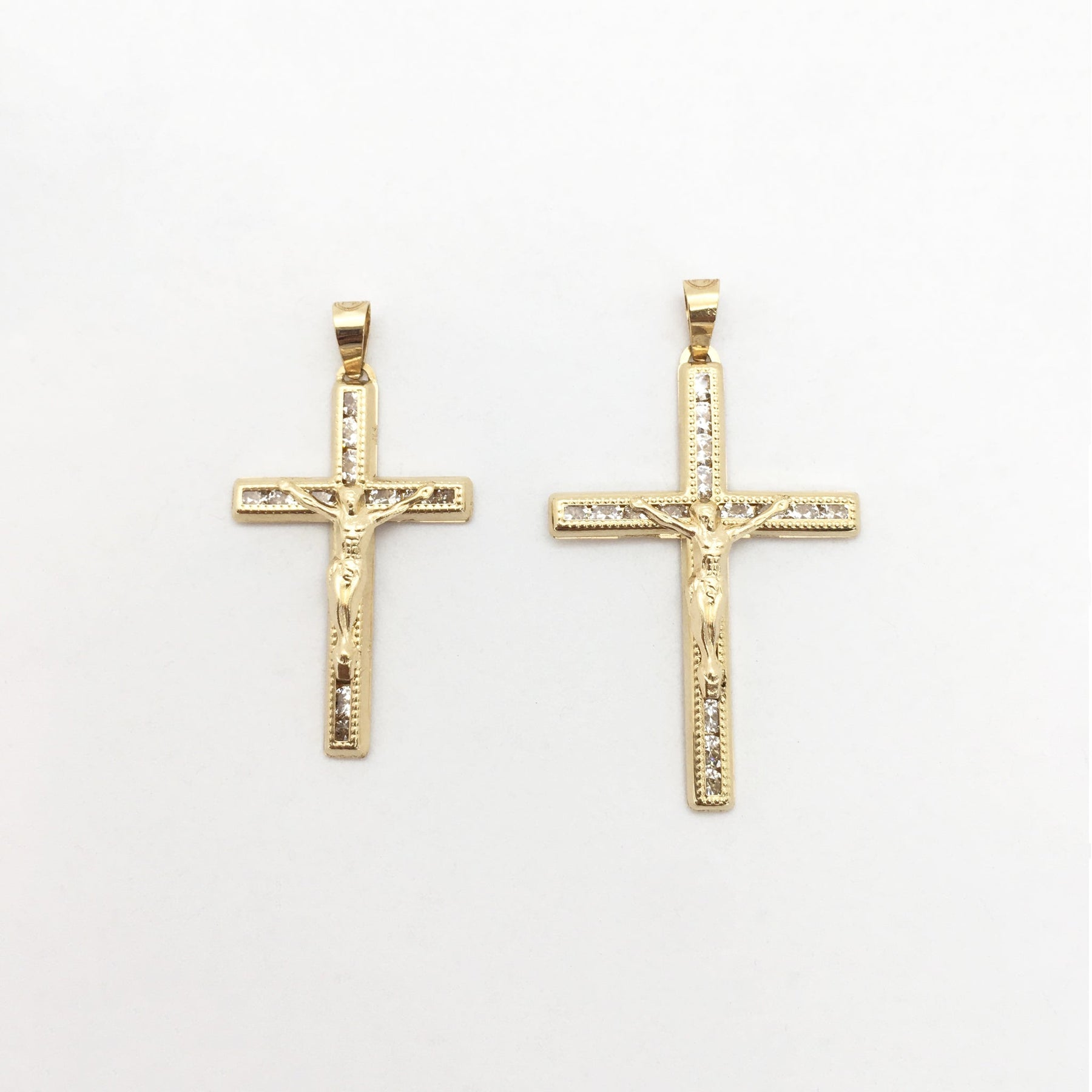 This crucifix pendant with white cubic zirconia gemstones inside the cross and bordered with milgrain details make it the perfect piece to show your devotion with style and glory.