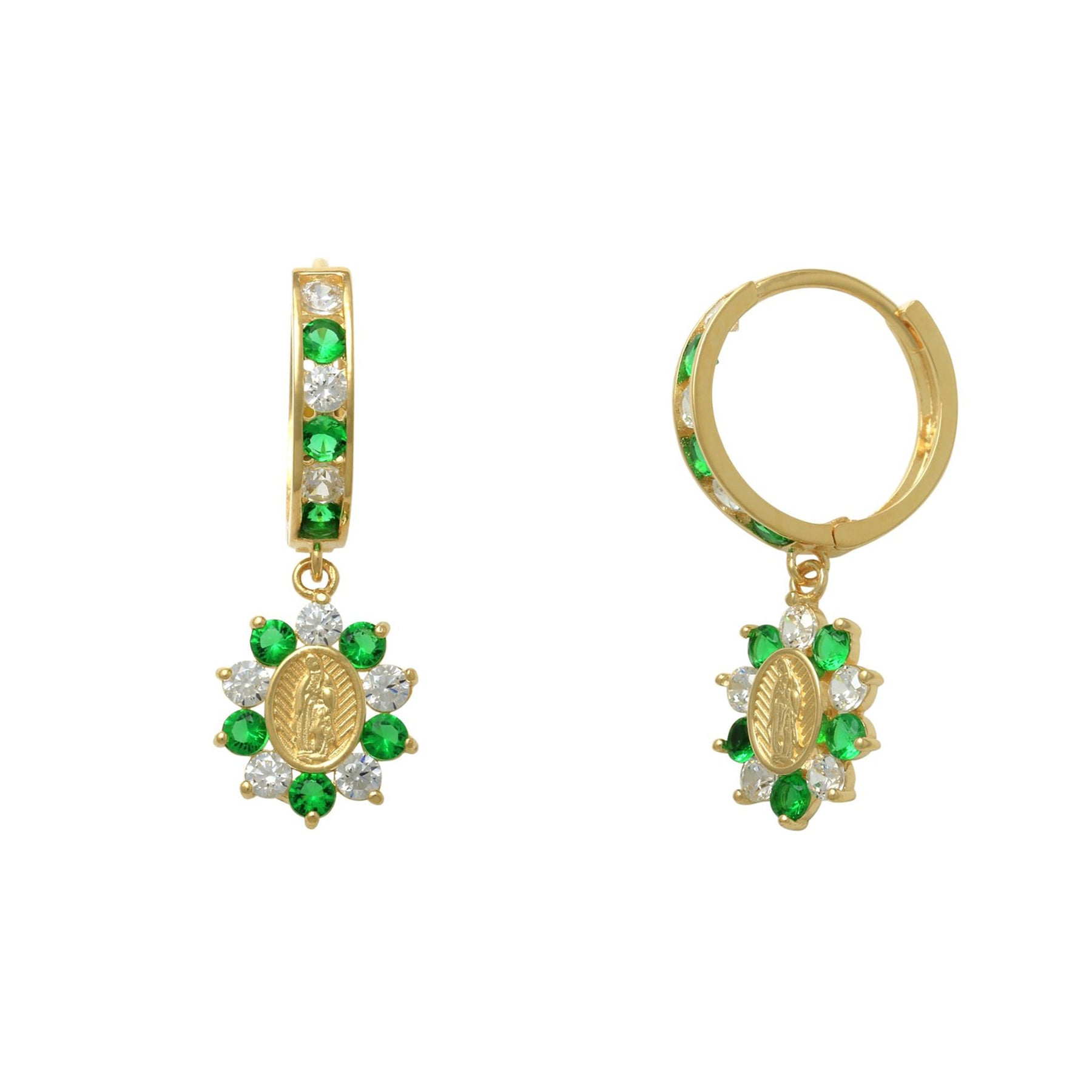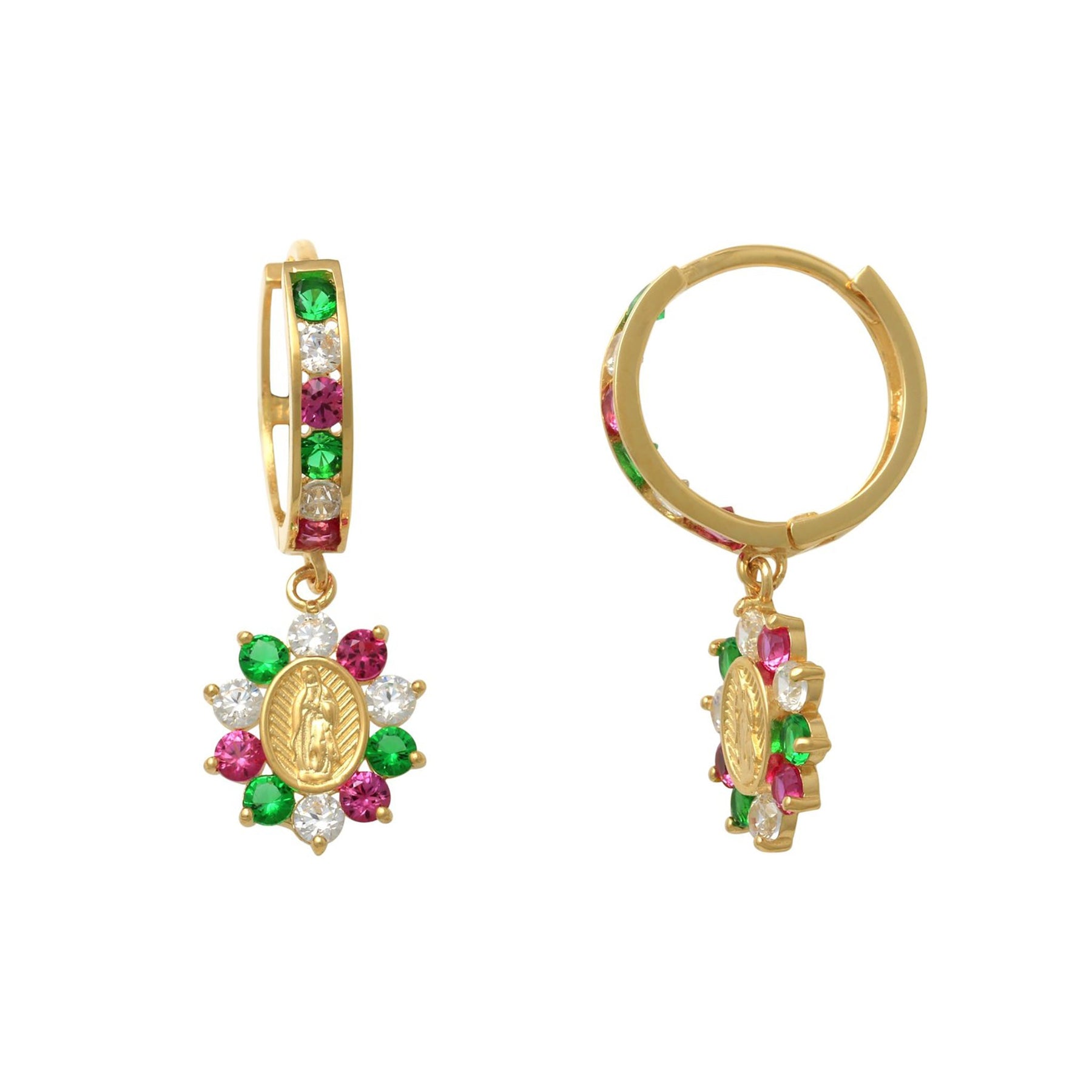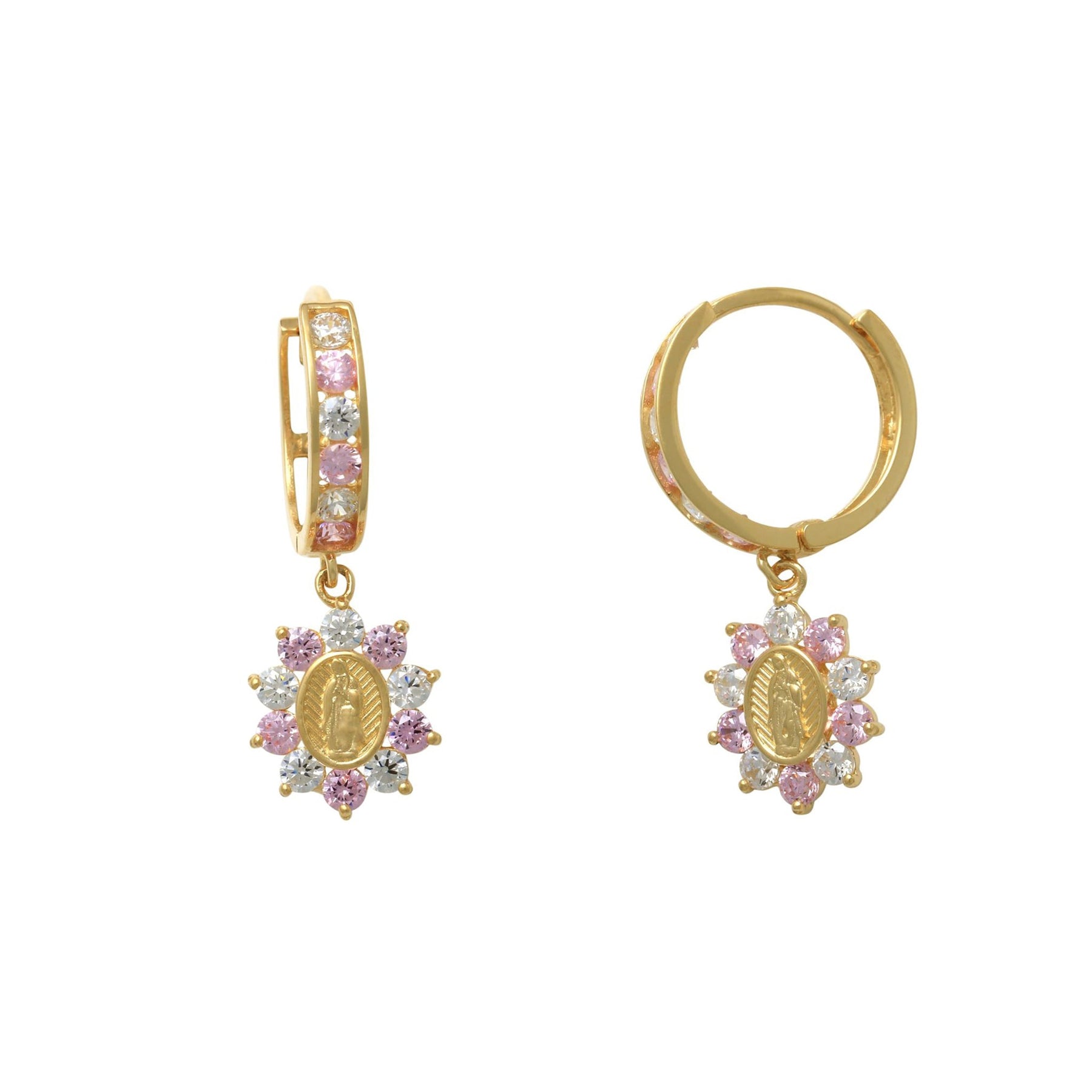 Halo Virgin Mary Hanging CZ Earrings (14K)